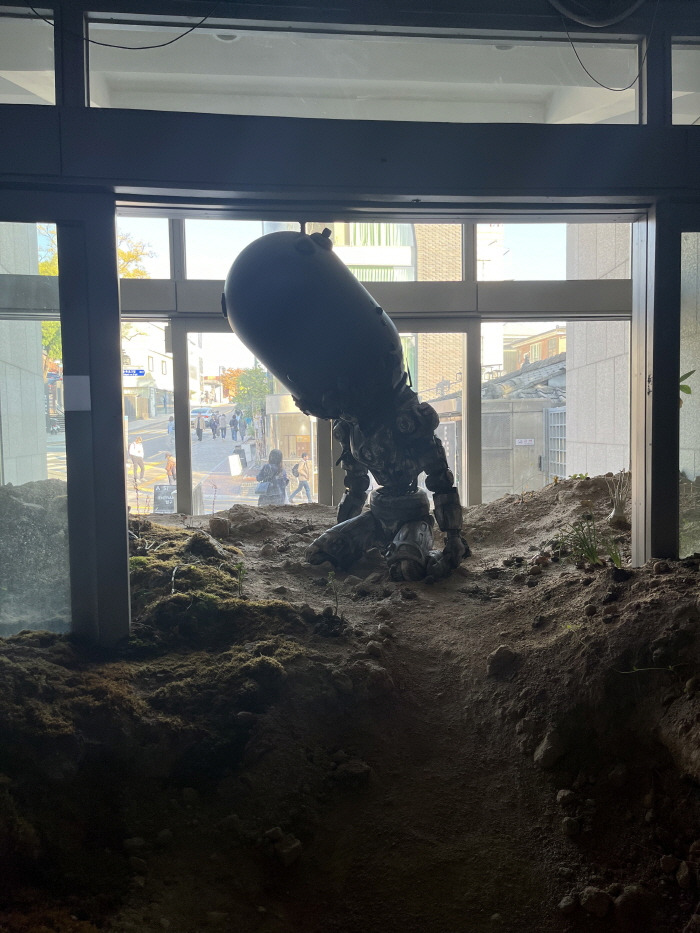 우리에게 정보를 전달해주는 역할을 하는 설명문은 엉망진창이다. 글자는 훼손되어 알아보기 힘들고, 색감은 칙칙해 읽고 싶지도 않다. 그리고 흙더미 속에 엉뚱하게 올라간 수박, 호박이라니. 이질적이다. 아니, 애초에 미술관에 공사장에 온 듯한 흙더미라니. 평소에 우리가 생각하던 미술관의 형태와는 전혀 다르다. 미술관에 온 것이 아니라 마치... 멸망 후 폐허가 된 마을에 발을 들인 것 같은 느낌이었다.