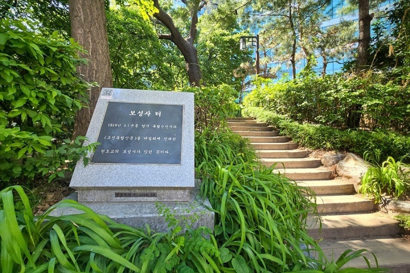 조계사 옆, 지금은 ‘수송공원’이라는 이름으로 직장인들이 산책을 즐기는 평온한 터에는 당시 보성사가 있었다는 작은 표석만이 남아 있습니다.