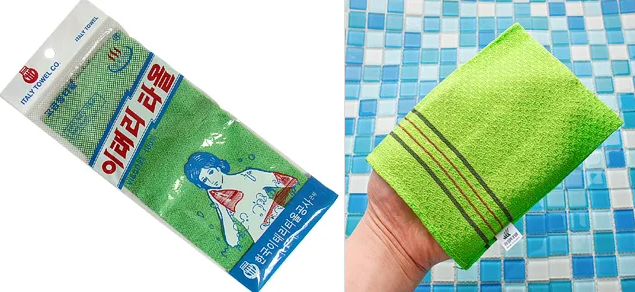 초록색 바탕에 검은 줄무늬, 피부가 시뻘게지도록 때를 벅벅 밀 때 없어서는 안 될 이태리타월! 그런데 왜 100% 한국의 목욕 문화 발명품에 '이태리'라는 이름이 붙었을까요?