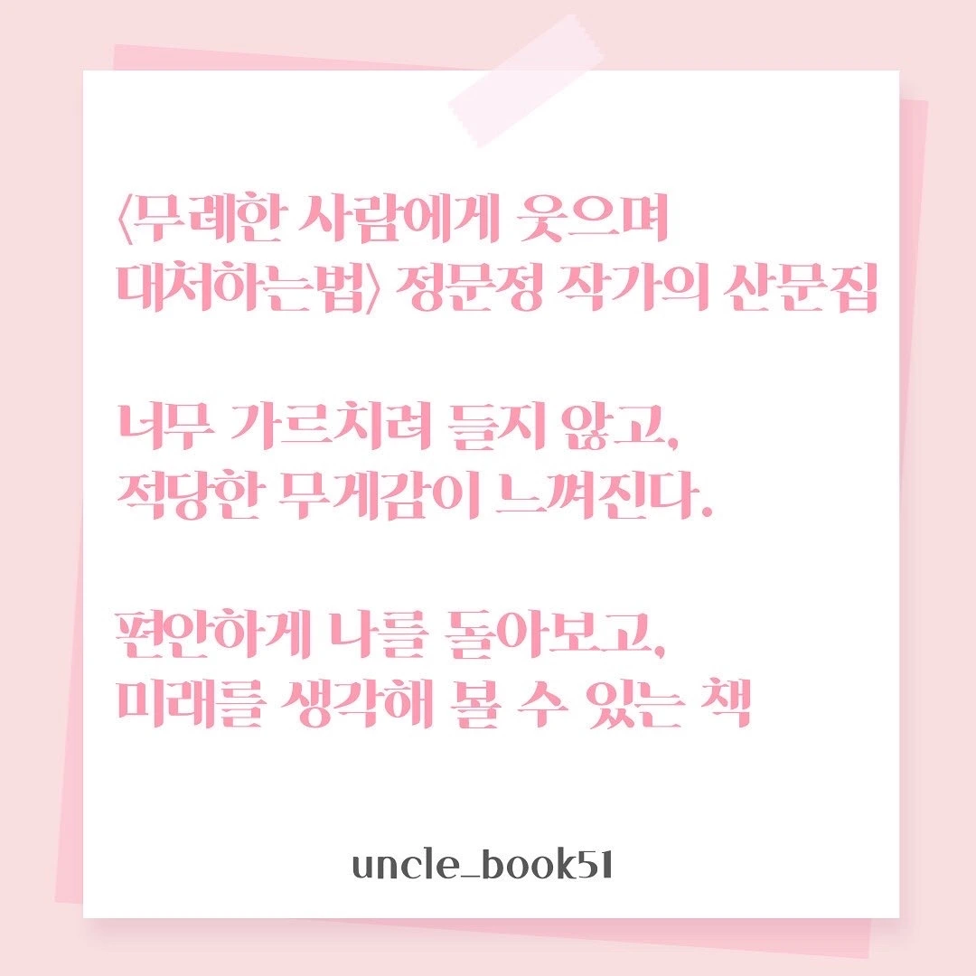 <무례한 사람에게 웃으며 대처하는 법>의 작가 정문정의 산문집.