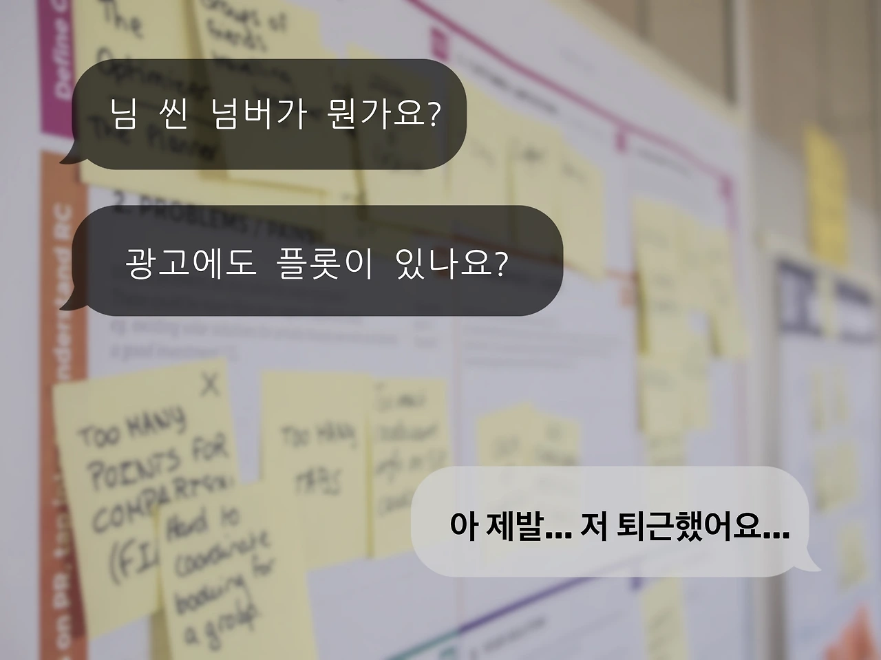 나는 광고 시나리오 입문을 프리랜서로 했기 때문에 시니어 작가님의 조언을 들을 일도, 피디님의 피드백을 받을 일도 없었다. 원고를 작성해서 넘기고 멘트 수정이 오면 광고주 니즈에 맞춰서 수정해 주면 끝이었다. 지금 회사에 입사하기 전까지는. 지금 회사에 입사하면서는 피디님과 감독님의 피드백을, 꿈에 그리던 피드백을 죽기 직전까지 받고 있다. 살려줘...