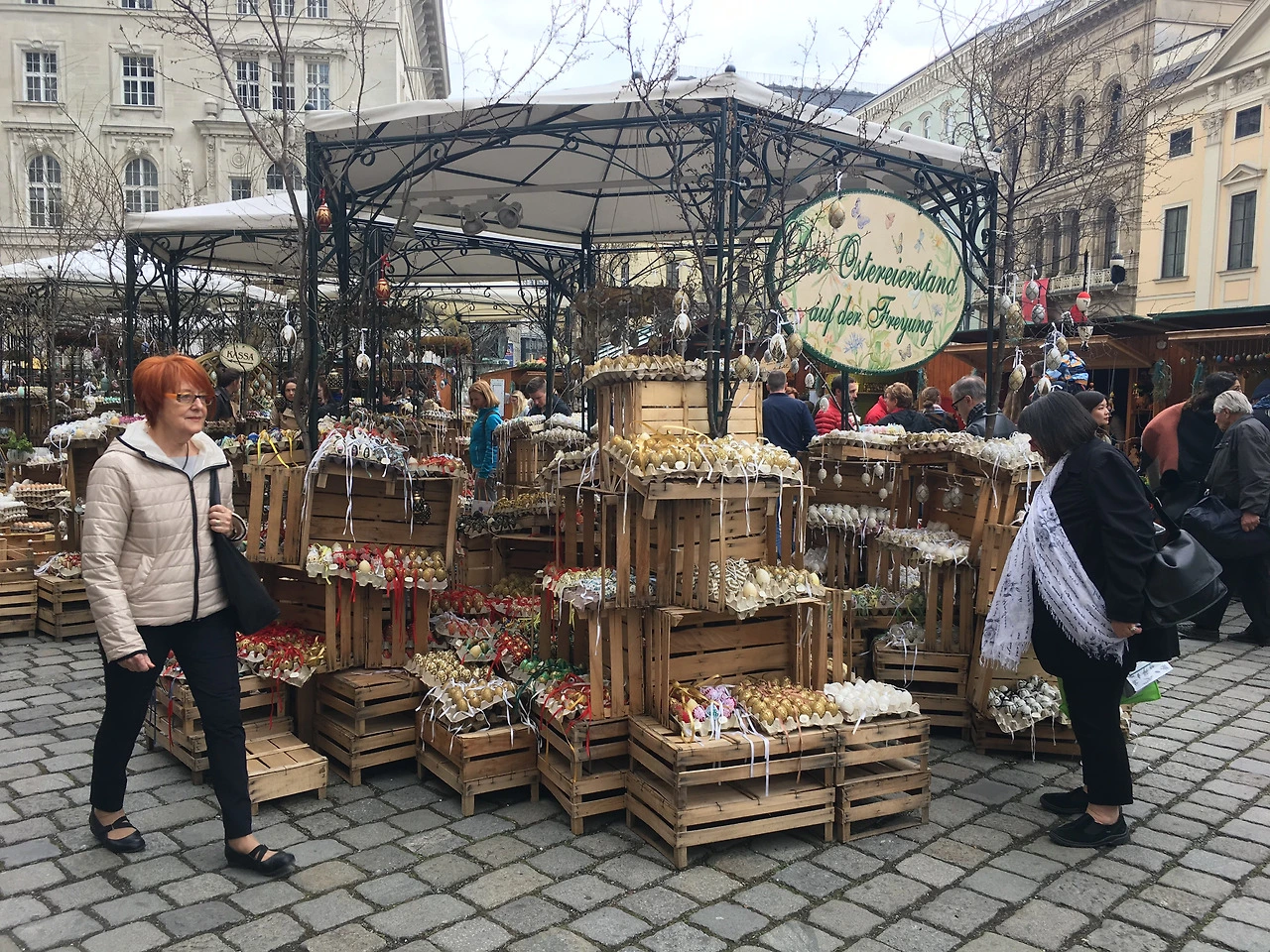 빈에 도착해서 시내를 돌아다니는데 완전 신세계였어요. 구경거리가 기대를 뛰어넘게 많은 거예요! 시내 곳곳에 마켓이 넘쳐나는데 대체 눈을 어디다 둬야 할지 정신이 없었어요. 구글 지도에 표시되지 않은 곳에도 임시 마켓이 생길 정도라서 그냥 걷다 보면 마켓이 보여서 구경하게 되는 매력이 있었죠. 대개는 부활절 기념상품을 파는 경우가 대부분이었지만 그 종류도 어찌나 많은지요.