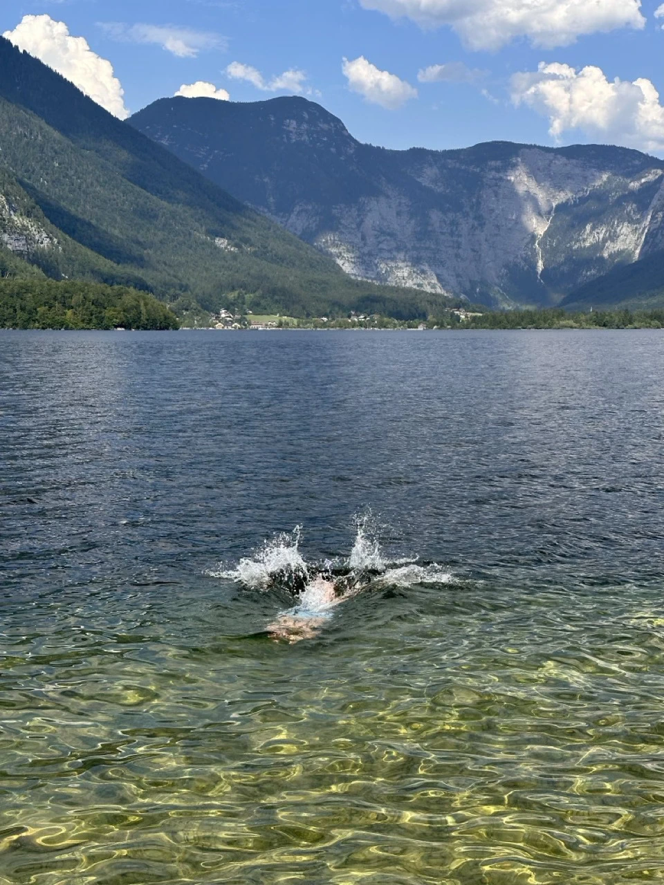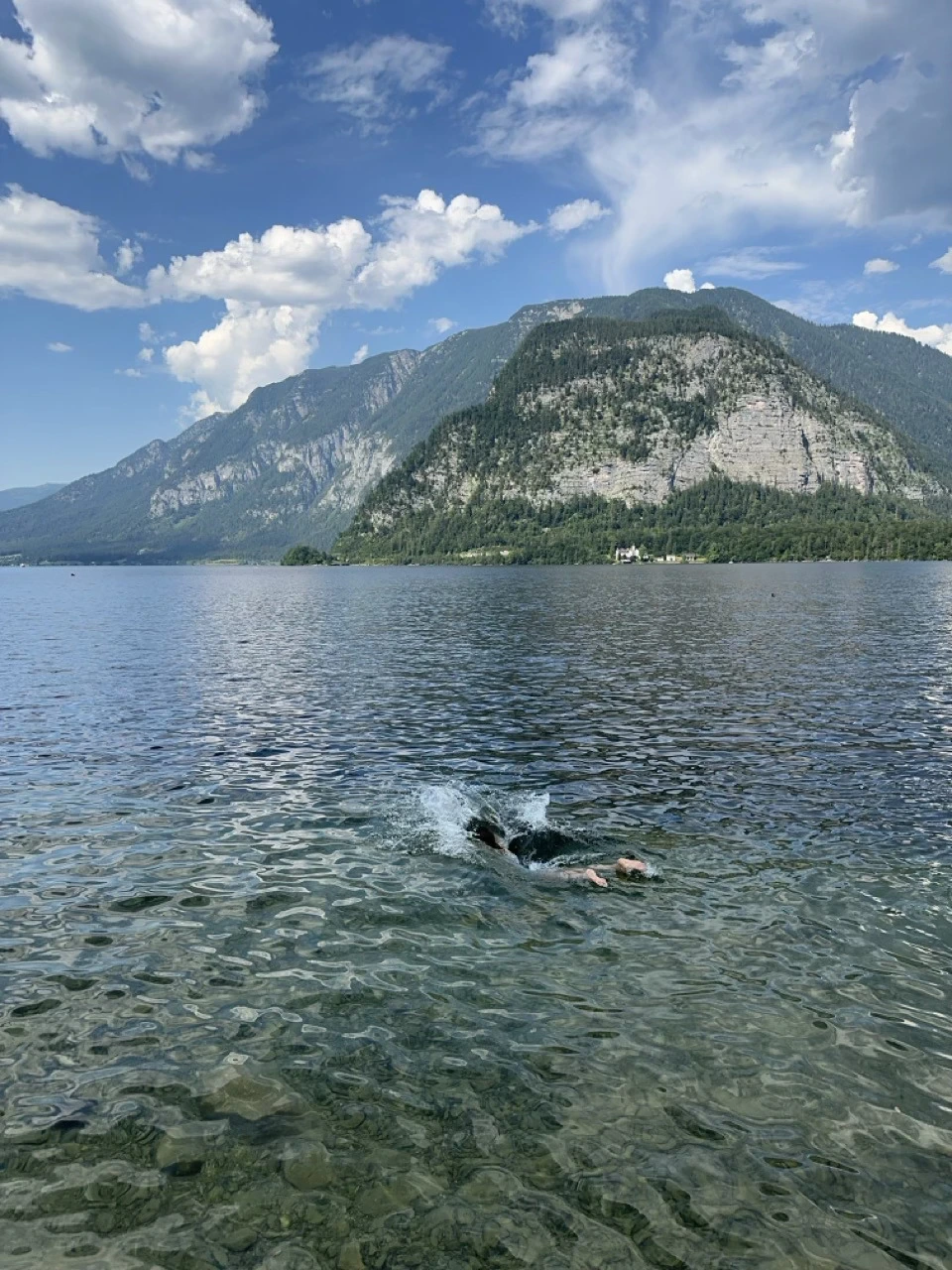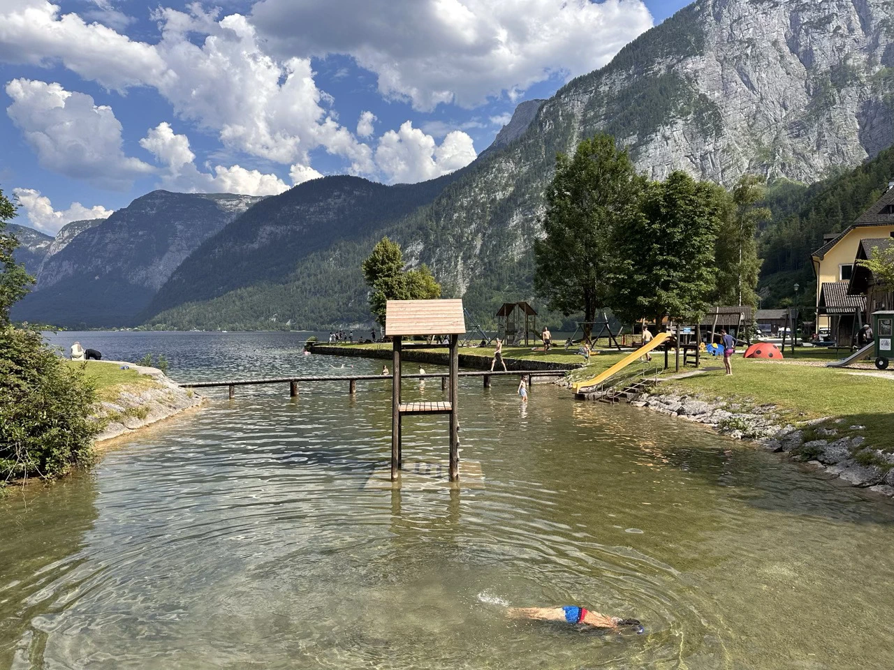 할슈타트 호수가 너무 맑아서 수영을 할 수 있을 거라고는 상상도 못 했기에 둘은 어안이 벙벙해졌다. 분위기를 보니 관광객도 있었지만 이 근방에 실거주하는 사람들이 더 많았다.