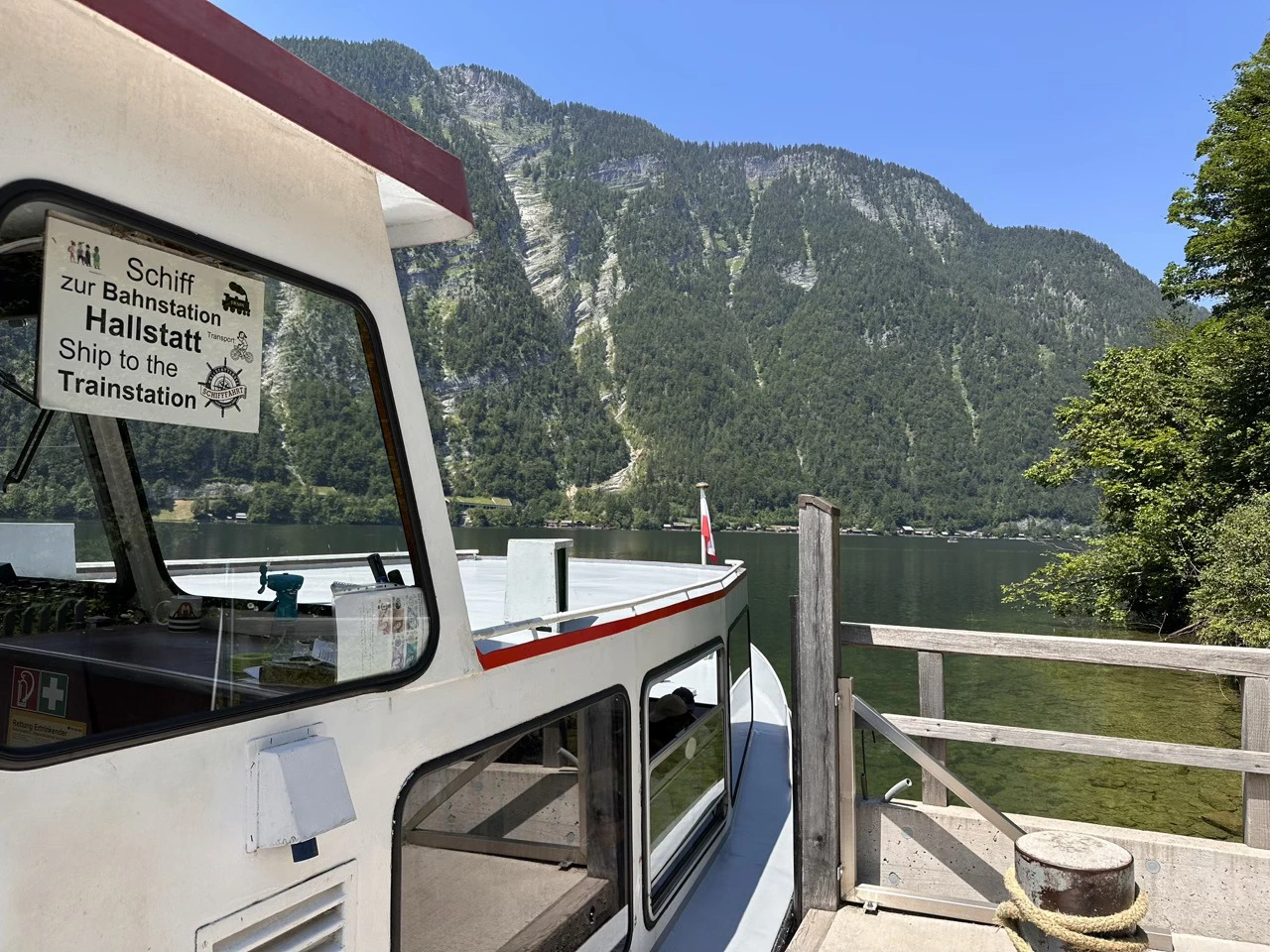 P는 캐리어를 지키며 사람들 사이로 기웃거리며 밖을 보았다. 예전에 왔을 때는 4월 중순이라 그런지 보트에 사람이 많지 않았고 산 정상 쪽에 눈도 약간 쌓여있었다. 또 흐린 날씨여서 산에 구름이 걸친 풍경을 봤었다. 반면 지금은 여름이고 완연한 초록빛이다. 하늘에 구름 한 점 없이 온통 초록초록한 할슈타트를 보다니 '구라 같다'라고 생각했다.