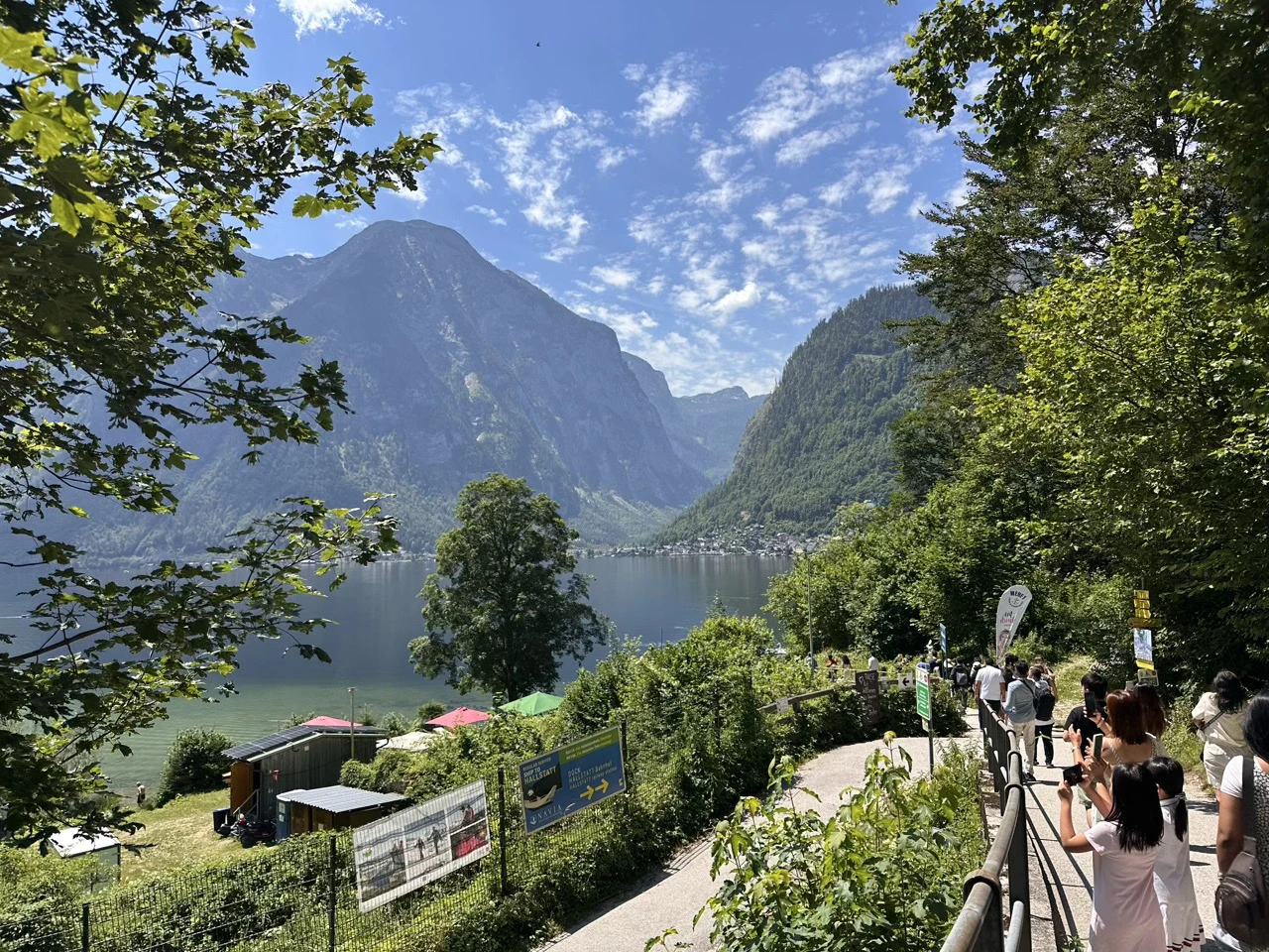 J는 어찌 운 좋게 앞부분 창을 통해 할슈타트 풍광을 볼 수 있는 위치에 서게 되었다. J는 할슈타트 풍경을 보며 계속 '우와, 우와'하며 감탄을 금치 못했다. 호숫가에 가니 호수는 무척이나 투명하고 맑아 얕은 곳은 바닥까지 훤히 보였다. 호수 자체도 규모가 컸지만 거대하고 급격한 경사를 가진 산이 여럿 둘러싸고 있는 상황도 꽤 비현실적인 느낌이었다.