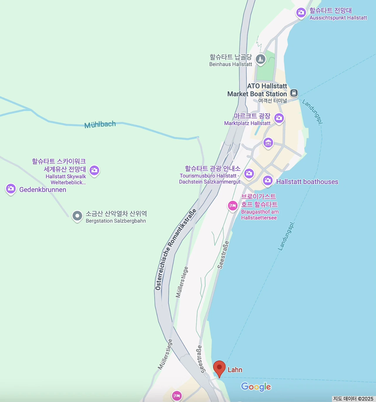 앞서 할슈타트 마을은 여유 있게 돌아도 2시간 정도면 다 볼 수 있다고 언급했는데, 통상 Lahn이라는 여객선 항구부터 할슈타트 전망대까지 돌아다니고, 이는 최단 경로로 걸으면 15분 밖에 안될 정도로 짧은 거리다.