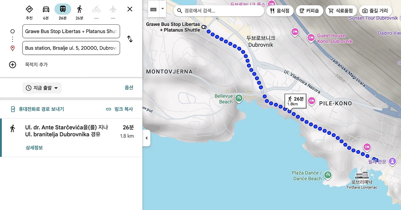 하지만 두브로브니크에서도 구글 지도는 여전히 유용하다. 새로운 장소 발견에 도움이 된다. 훗날 소개할 스르지산 석양도 구글 지도 덕분에 더 멋진 장소에서 쾌적하게 볼 수 있었기에.