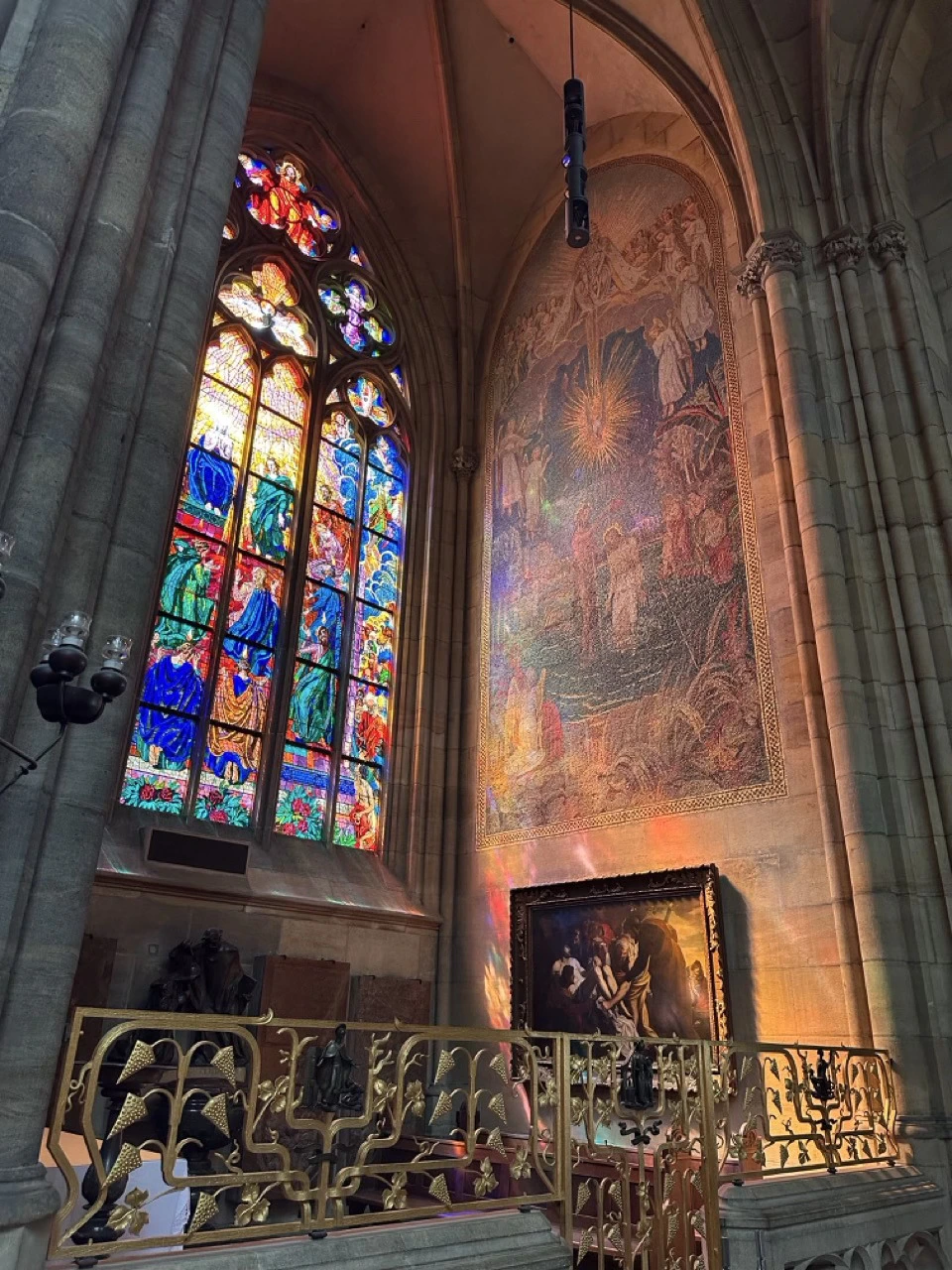 성 비투스 대성당 내부에서 볼 수 있는 다양한 조형물과 건축 양식도 인상적이었지만 특히 이 스테인드글라스가 인상적이었다. 마침 맑은 날씨 덕에 본 것이겠지만 햇살이 창문을 통해 반사된 빛이 너무도 아름다웠다. 저절로 경건해지는 마음이 들 정도로.
