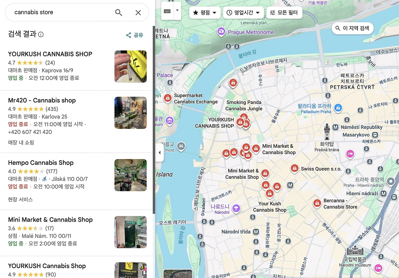 사실 맘먹으면 더 볼 시간이 있던 프라하에서 굳이 낮에 쉬는 것을 택한 것은 피로가 쌓인 것을 인지한 것도 있지만 프라하 곳곳에 있던 그 CANNABIS 샵의 정체를 알게 된 것에 대한 경계도 있었다.