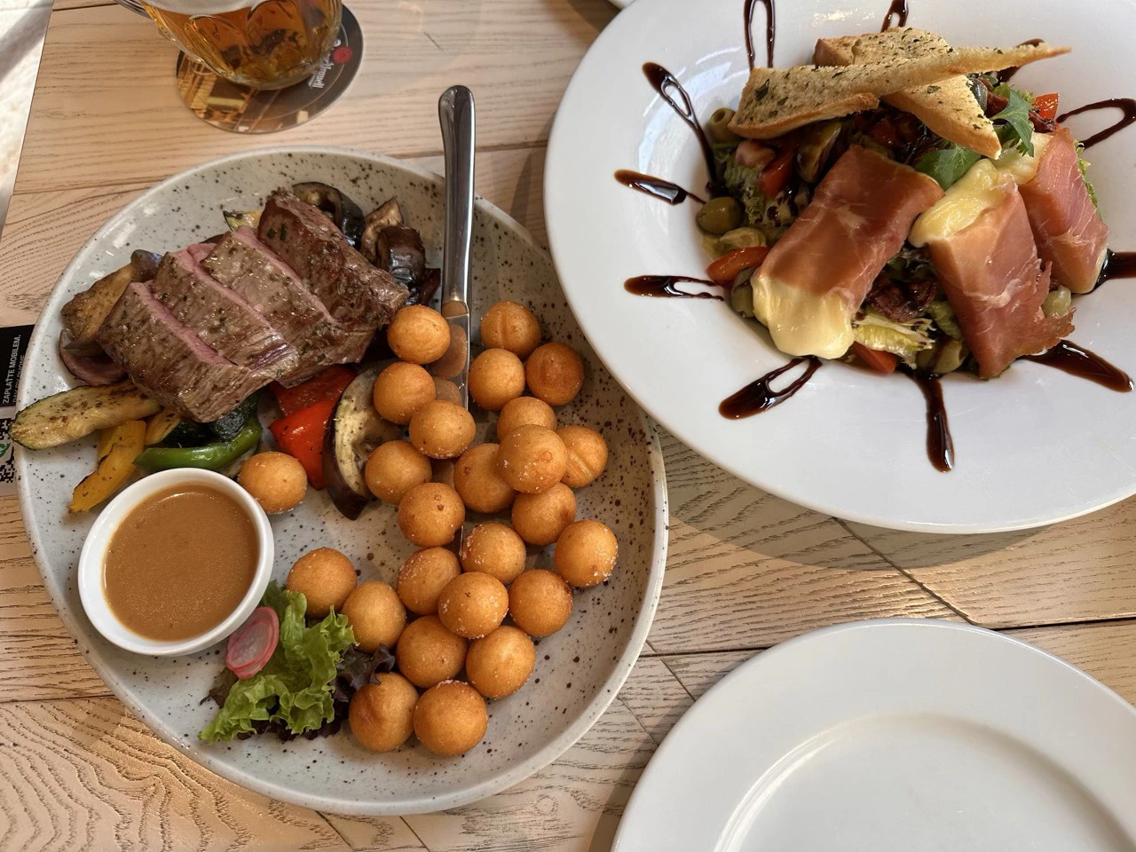 원래는 타르타르라는, 체코식 육회를 먹으려고 했는데 주문할 때 실수로 치즈-프로슈토햄 샐러드와 스테이크를 주문해 버렸다. 하지만 얼라려? 여태 먹어본 것 중 가장 맛있었다. 게다가 맥주 파는 곳에서 파는 음식이다 보니 맥주와 잘 어울리는 것은 두말할 나위 없었다.