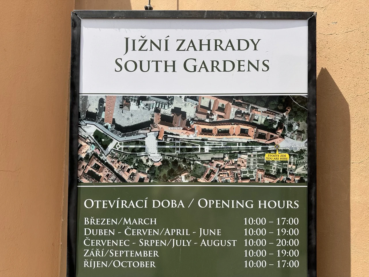 전망대 감상 후 성에서 볼 건 다 봤으니 점심을 먹으러 가기로 했다. J가 미리 봐둔 곳이었는데 프라하 성 입구 쪽으로 다시 돌아가야 해서 지금까지 온 곳을 다시 돌아갈 참이었다. 그때 문득 P의 직감이 발동했다. 전망대 옆에 SOUTH GARDENS라는 표지판이 있었는데 이 정원을 통해 나가면 될 거 같다는 촉이 온 것.