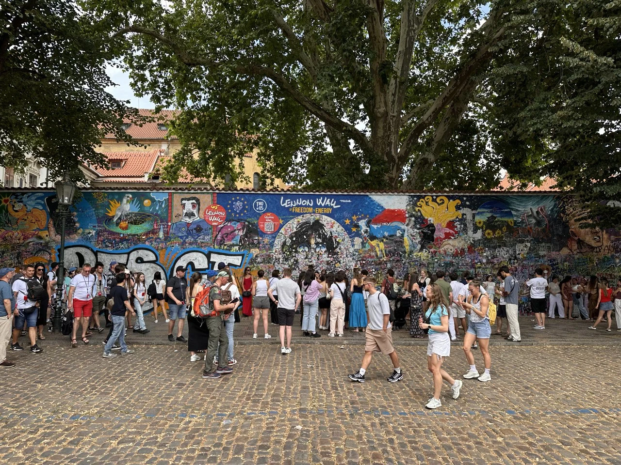 가는 길에 레넌 벽이라는 것이 있다고 해서 살짝 구경해 봤다. 전쟁 반대, 평화의 메시지가 가득하다는데 화려하고 멋져서 배경으로 사진 찍는 사람이 많았다. 이윽고 페트린으로 올라가는 푸니쿨라를 타는 곳에 도착했는데 이럴 수가?!