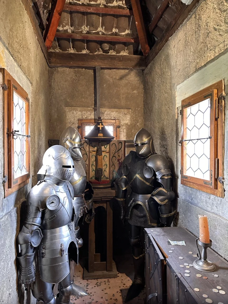 그렇게 별생각 없이 둘러보다가 둘의 이목을 끈 곳이 있으니 바로 DEFFENSE CORRIDOR라는 곳이었다. 계단을 타고 위로 올라가면 중세의 방어구, 무기, 의복 등을 구경할 수 있는데 영화나 게임 등에서 보았던 것들을 실물로 볼 수 있다는 점에서 둘에게 매우 흥미로운 곳이었다. 비늘 갑옷과 사슬 갑옷을 실제로 볼 거라고 언제 생각해 봤겠는가. 심지어 위 중앙 사진과 같이 어떤 장인이 활을 직접 만드는 풍경도 볼 수 있었다.
