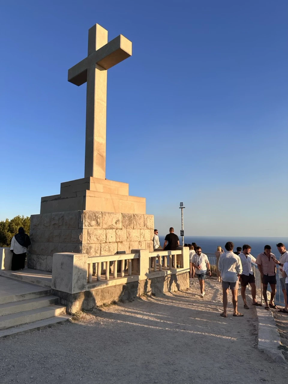 커다란 십자가가 있는 공터에 사람들이 몰려있어 가보니 그 끝자락에 매달려야 겨우 석양이 보였다. 게다가 건물 하나가 가려서 해가 질수록 그 건물이 가릴 수도 있겠다는 생각이 들었다. 분명 케이블카를 타고 올라오면 멋진 석양을 볼 수 있다 했는데 이렇게 보는 게 정말 맞는 건가 싶은 생각이 들었다.