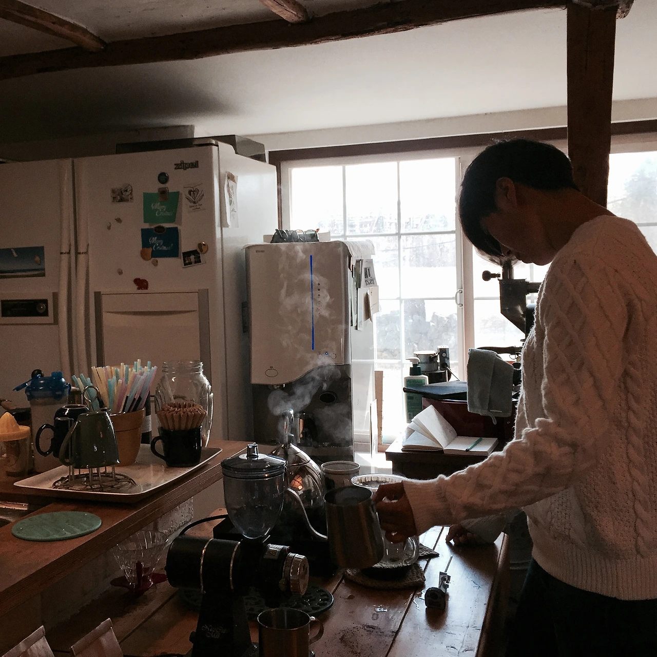 만드는 사람 힘들 거 알면서 메뉴판에 있는 거 다 먹어보고 싶어서 (허락받고) 종류별로 주문했다. 핸드드립 커피, 카푸치노, 짜이, 레몬커피, 그리고 그 유명한 뎅유자에이드. 서비스로 프레즐도 받아먹고 커피 한 모금이 아쉬워서 핸드드립 한 잔 더 시켜서 나눠 먹기까지.