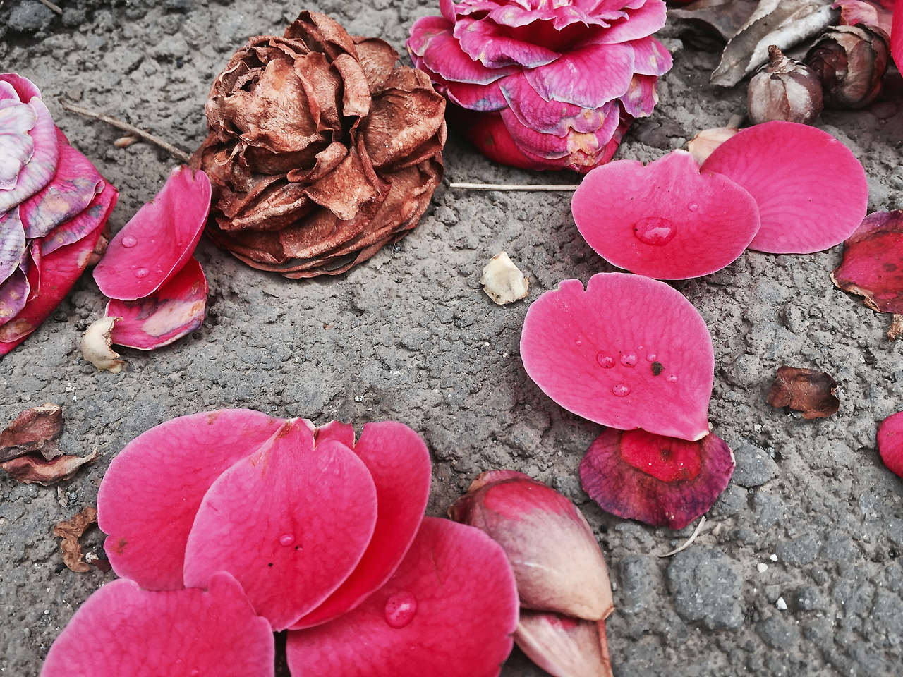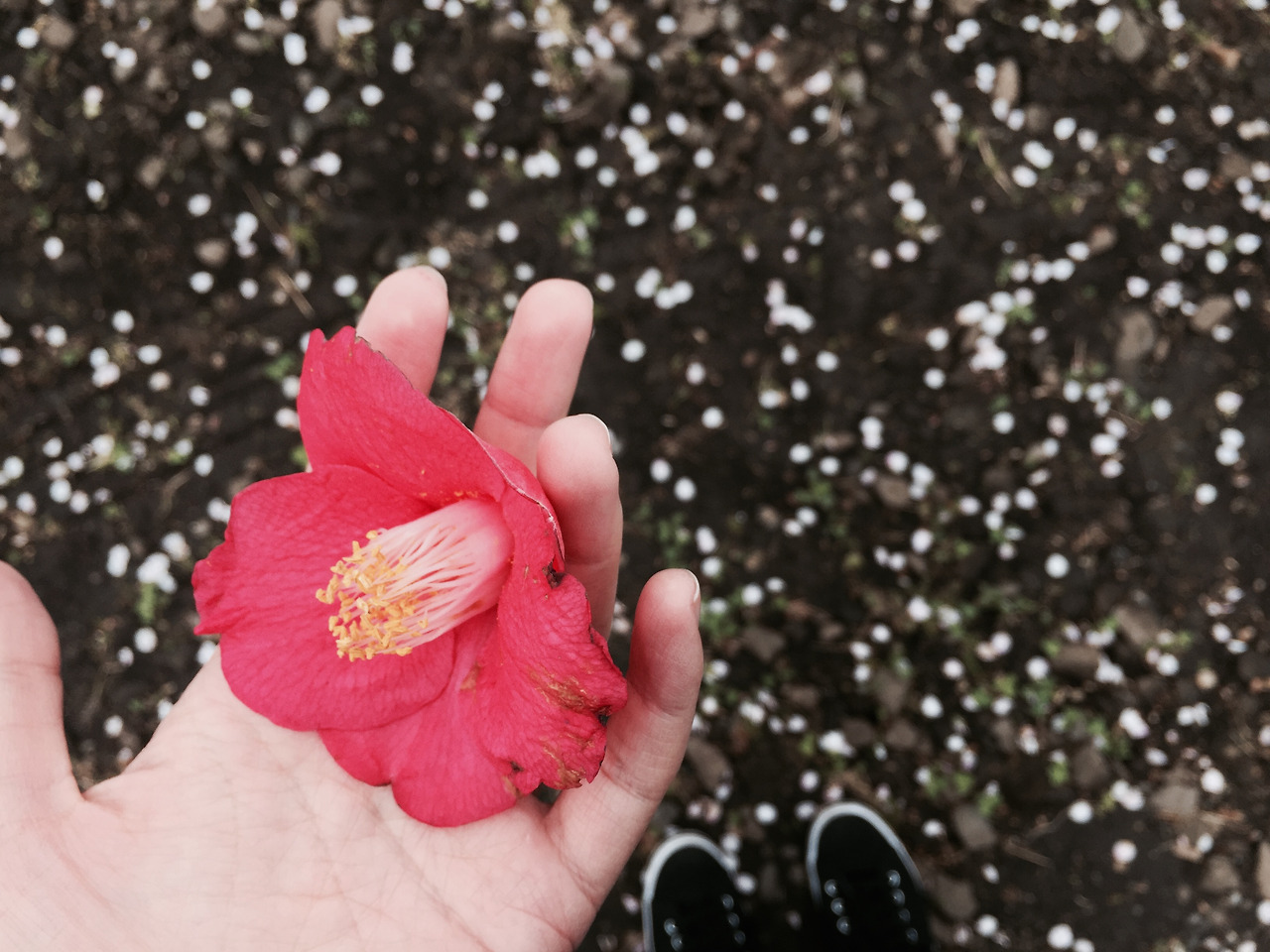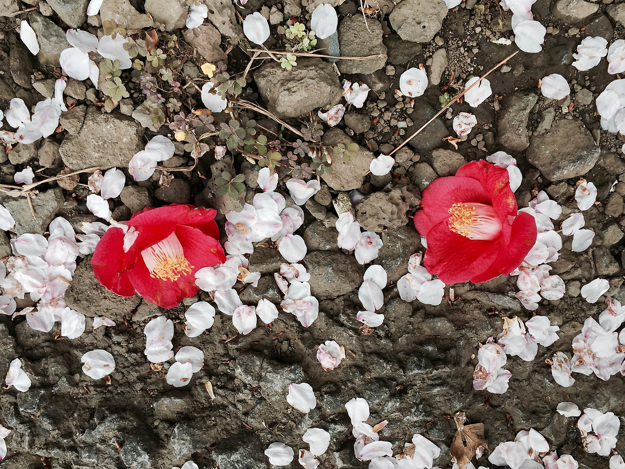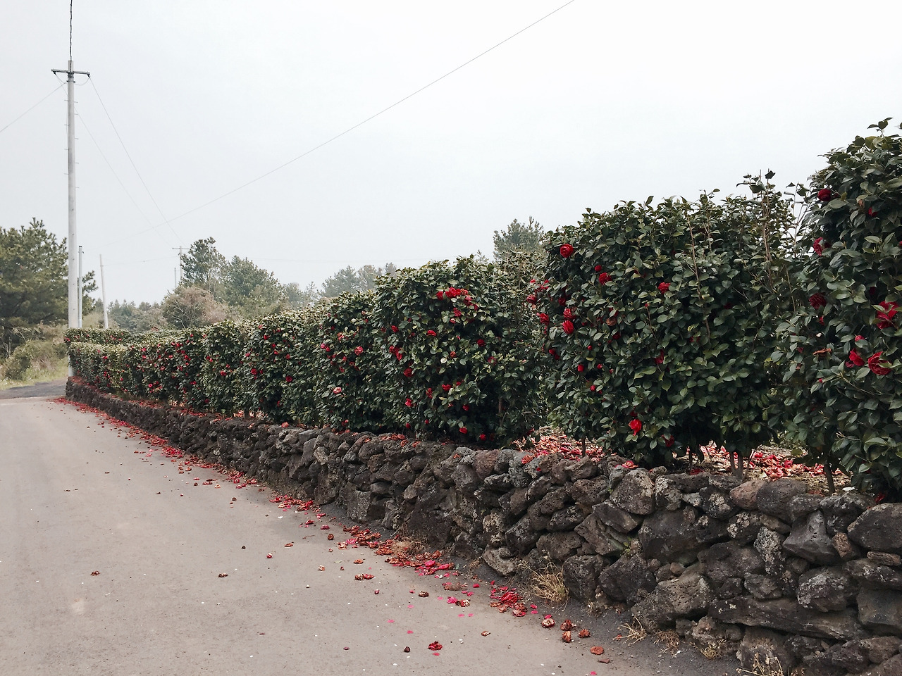 삼달교차로에서 두모악까지 쉬엄쉬엄 걷는 길에 벚꽃 비가 내렸다. 늦은 동백도 기다려 주었다.