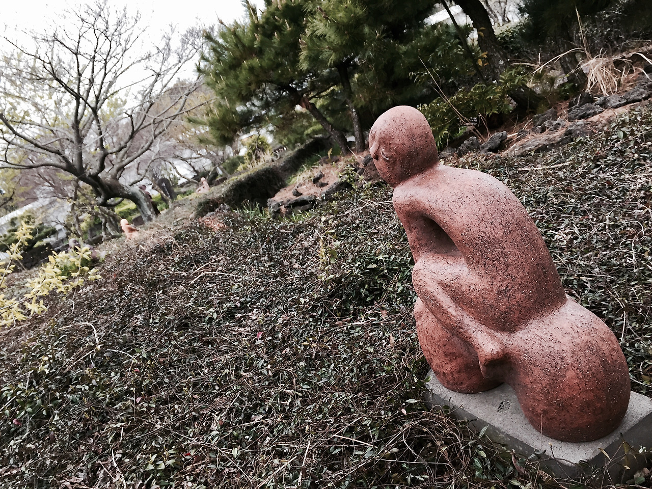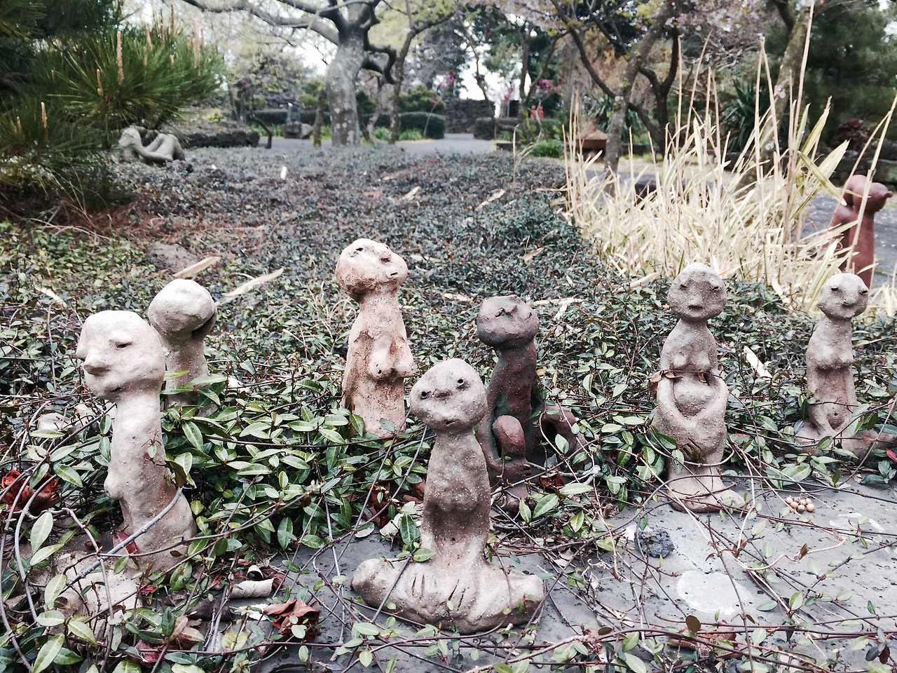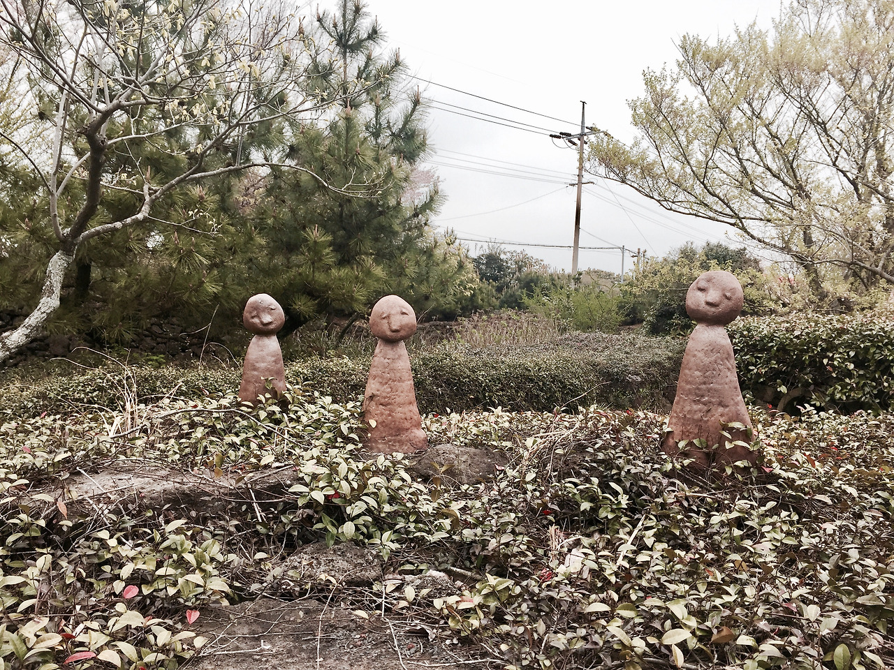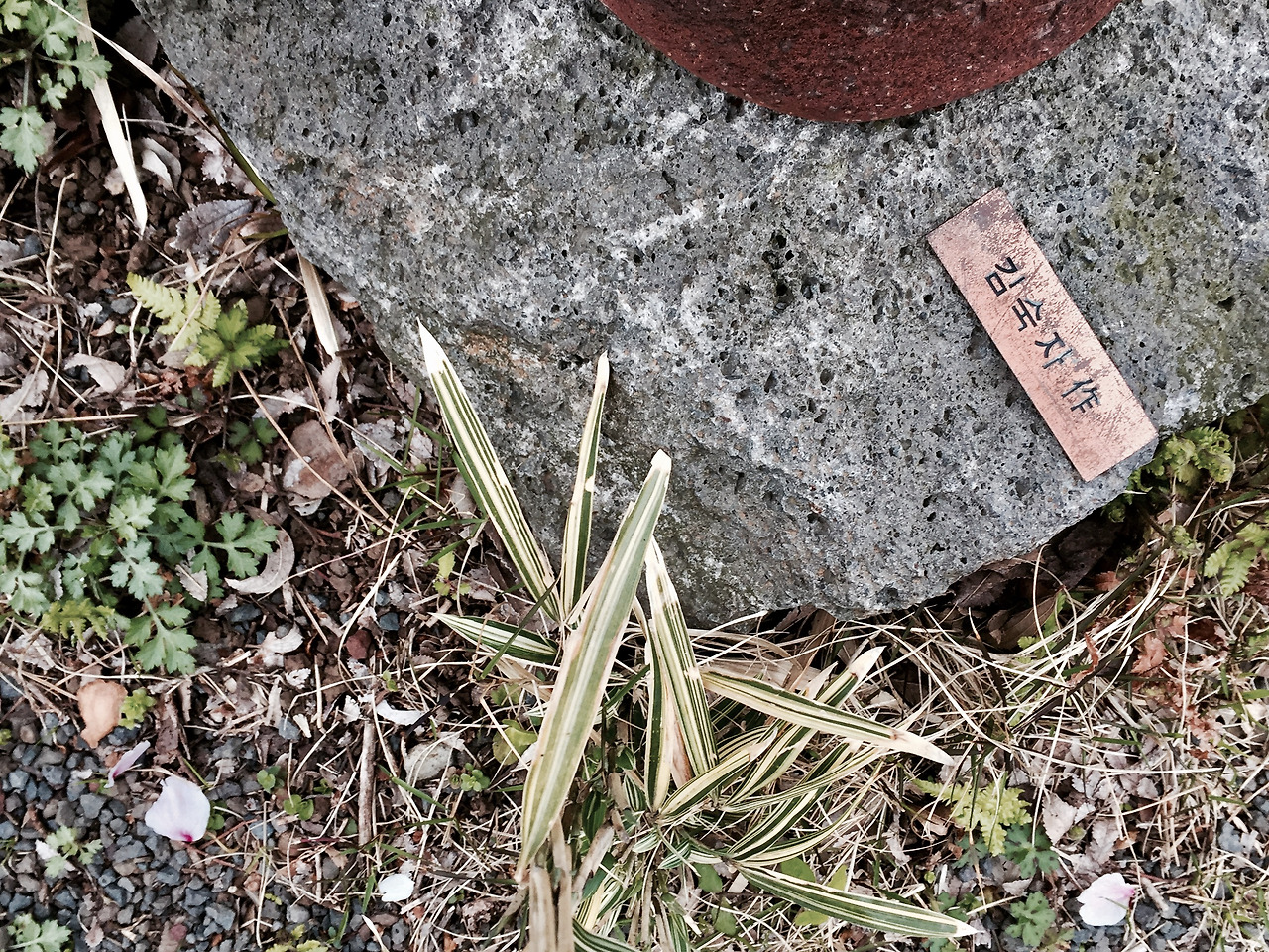 두모악 정원에는 고인의 지인인 조각가 김숙자 님의 토우 작품이 어우러져 있다. 이번에 제주를 떠나며 소장품을 더 기증하셨다고 한다. 입구에서 갤러리 건물로 가는 길에도 새 작품이 놓였다.