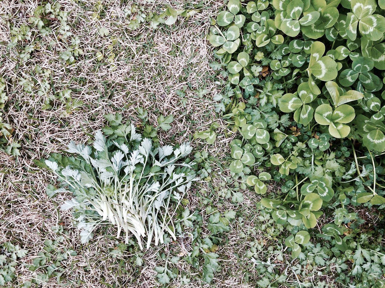 네 잎 클로버 두 개, 다섯 잎 클로버 한 개를 찾았다. 클로버 사이로 난 쑥도 뜯었다. 한참 뜯다가 향을 맡아보니 쑥이 아니길래 잔디밭에 고이 두었다.
