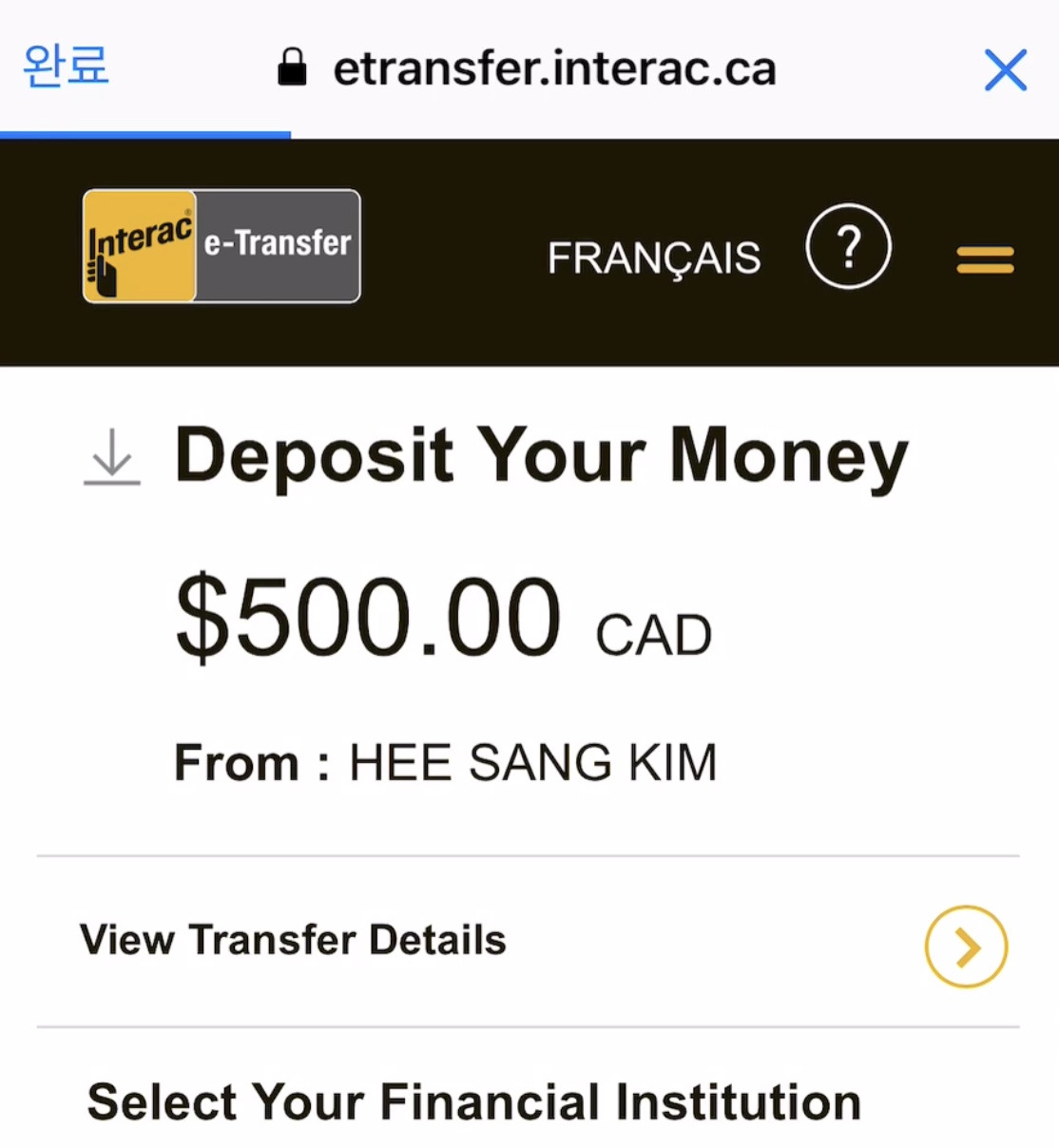 받을 계좌를 입력하려면 은행부터 선택하는 거겠지? 여러 은행 중 'TD bank' 로고를 누른다. TD bank 사이트로 이동하는 듯하더니 서버에 접근할 수 없다는 메시지가 나온다. 응? 뭐지? 전 화면으로 돌아간다. 다시 TD를 누른다. 또 같은 메시지가 나온다. 다시 전 화면으로 돌아간다. 온갖 다른 걸 눌러본다. 뭘 해도 계좌 입력하라는 단계는 나타나지 않는다. 우리가 뭘 잘못하고 있는 건가? 희상에게 사진과 영상을 보내본다. 동선에는 이상이 없다고 한다. TD를 누르면 계좌 입력 단계가 나와야 하는 거라고.