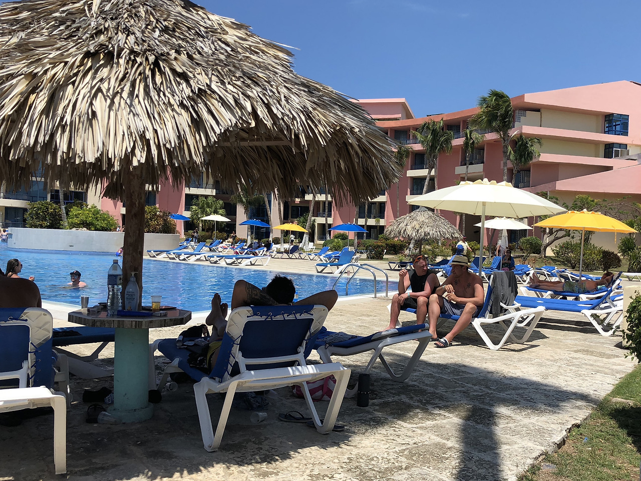 호텔이거나 호텔 앞 해변, 그게 끝이다. 호텔 수영장 물에서 놀거나 호텔 앞 바닷가 물에서 놀거나, 그걸 하러 가는 거다. 자유이용권 같은 팔찌만 차고 있으면 식당에서 밥을, 바에서 술을, 카페에서 커피를 공짜로 준다. 수영복 차림으로 하루 종일 놀기에 딱 좋은, 그런 곳이다. 대부분 캐나다, 멕시코, 프랑스에서 온 휴양객인데 가족 단위 손님과 노인이 많다. 우리처럼 젊은이 둘이 온 경우는 '거의' 없고, 동양인은 '아예' 없다. 한국 블로그에 리뷰 한 줄 없는 호텔이니 한국인 없는 거야 그렇다 치고, 한반도 옆 동네 밑 동네 건너 동네도 제로. 이곳에서 우리는 완전한 이방인이다. 하지만 피차 여행자 입장이기 때문일까, 어떤 면에선 아바나보다 심적으로 편안하다. 간혹 술 취한 놈팽이들만 조심하면 된다.