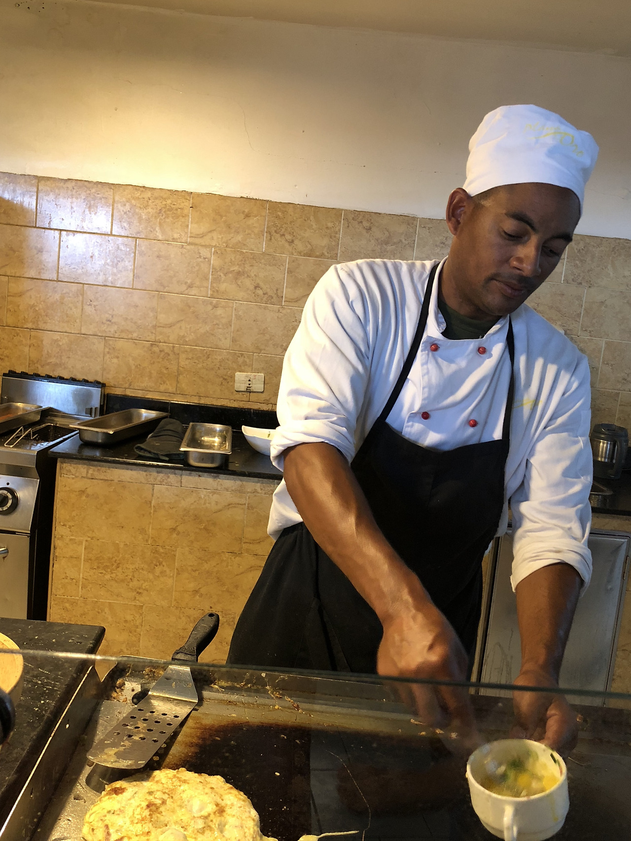 쉬러 온 그들과 달리 그저 '먹기 위해' 머무는 유일한 동양인 둘은 꼭두 아침부터 바쁘다. 기상하자마자 모자만 눌러쓰고 식당으로 직진한다. 브렉퍼스트 메뉴 하나하나와 굿모닝 인사하다가 달걀 프라이 앞에 멈췄다. 햄, 치즈, 채소 등 원하는 재료를 고르면 셰프가 달걀에 풀어 프라이를 만들어 준다. 볼에 가득 담긴 하얀 달걀이 탐스럽다. 눈 앞에서 쉐킷쉐킷하고 치이이이익 부쳐지는 모습을 보니 너무 먹고 싶다. 두 개 먹고 싶다. 하지만 나의 장염은 도무지 나을 기미가 보이지 않고 짜이도 미세하게 장염 증세가 나타나기 시작했다. 장트러블러의 직감상 지금 달걀은 위험하다.
