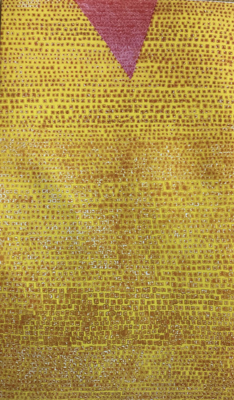 빼곡한 점들로 이루어진 그림들 또한 위압 감 없이 편안했다. 1층에 노란 배경의 그림 속에는 제각각 인듯한 네모가 수놓아져 있었다. 불규칙한 점들은 커다란 캔버스 속에서 더욱 익살스럽고 다정했다.