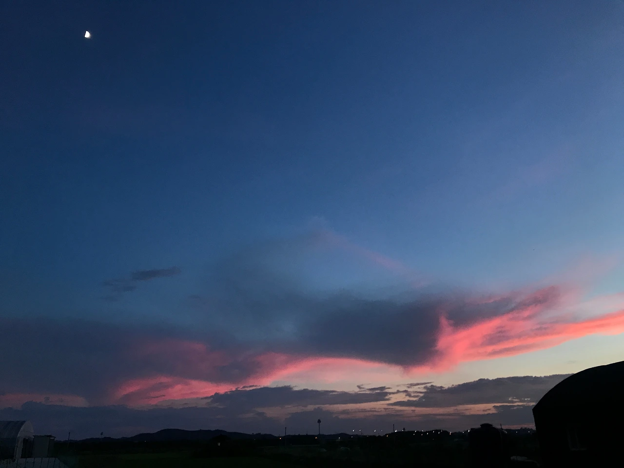 넓게 펼쳐진 하늘과 지평선, 멀리 고속도로를 달리는 차의 잔잔한 소음.