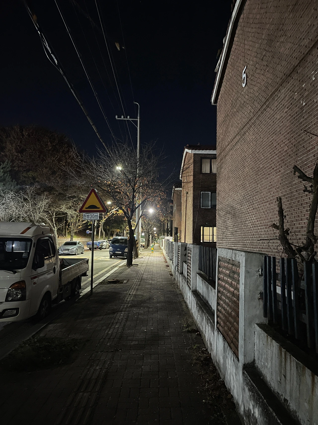 움츠러든 건물들이 견고하게 버티고 아직 떨구지 못한 잎을 간직한 나무들이 조금은 놀란 밤.