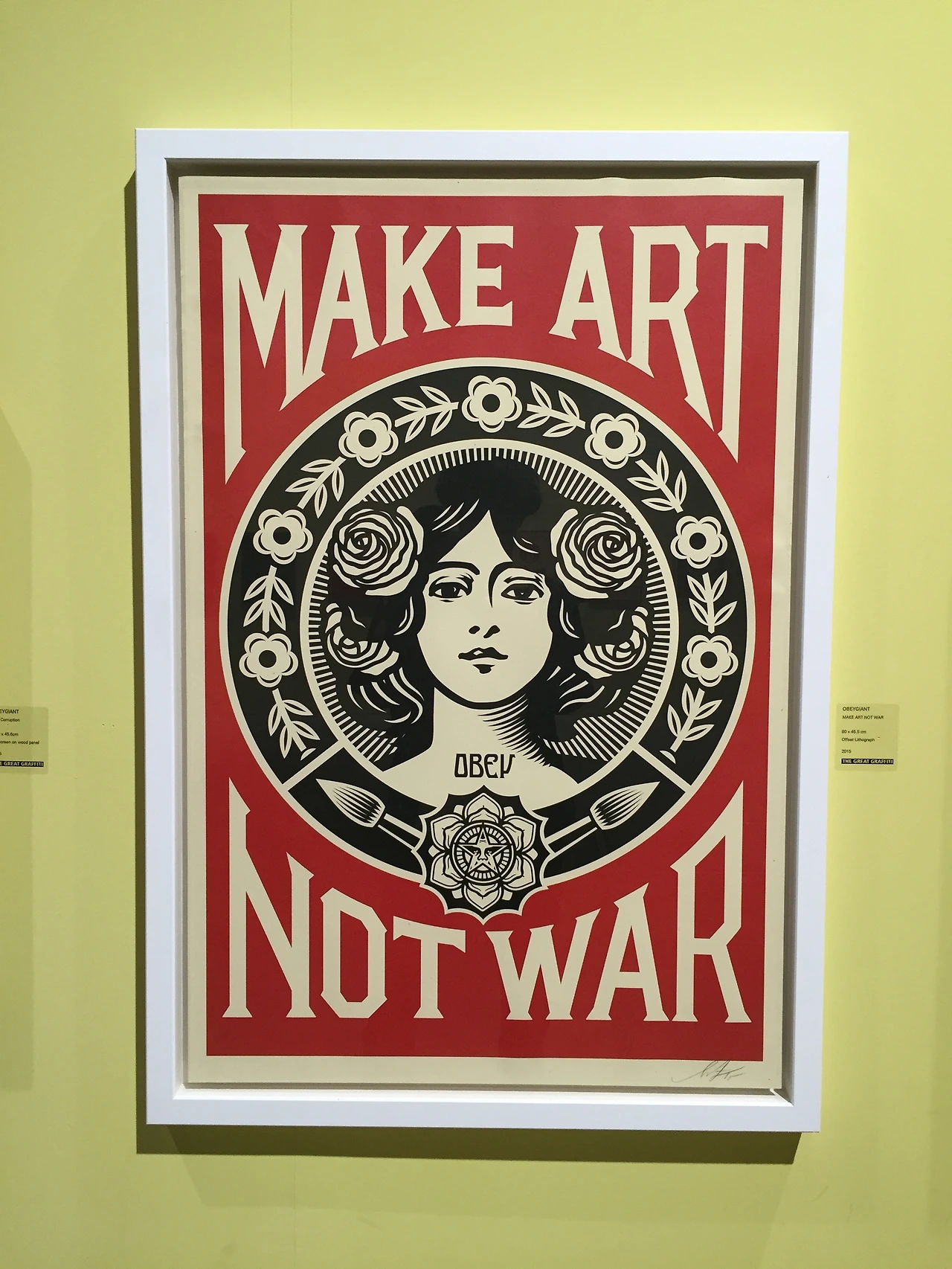 *다큐멘터리 <선물가게를 지나야 출구> 추천합니다. 뱅크시가 만든 것인데 원래는 미스터 브레인워시가 촬영한 소스입니다. 감독이 나중에 바뀌게 되는 엉뚱한 내러티브 속에서 거리미술에 대해 더 많은 것들을 감상할 수 있습니다. ‘위대한 낙서전’의 작가들 작품이 거리에 놓인 광경을 목격할 수 있습니다. 유튜브에도 있는데 자막이 없네요;;