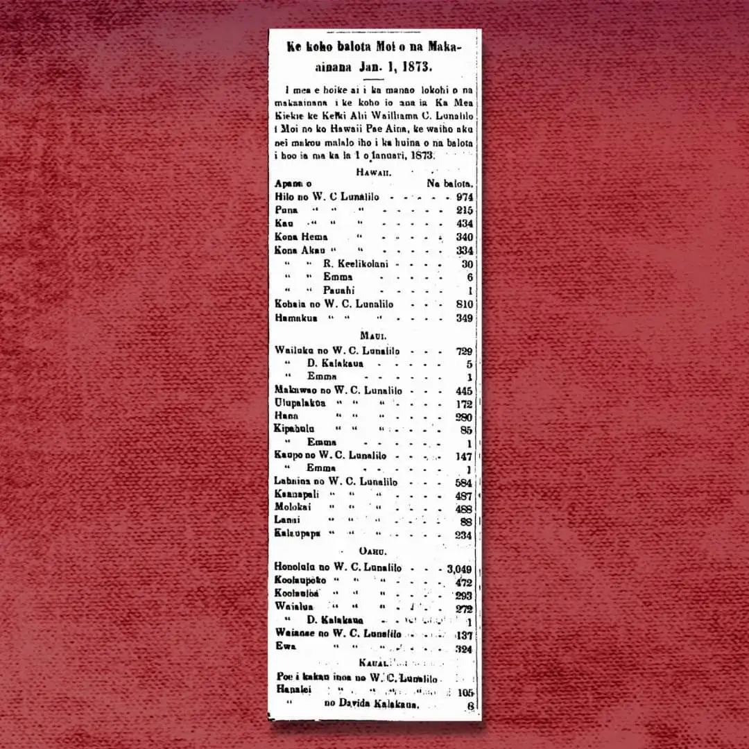 1873년 1월 1일, 하와이 왕국의 국민들은 새로운 왕을 선출하기 위해 투표를 진행하였다.