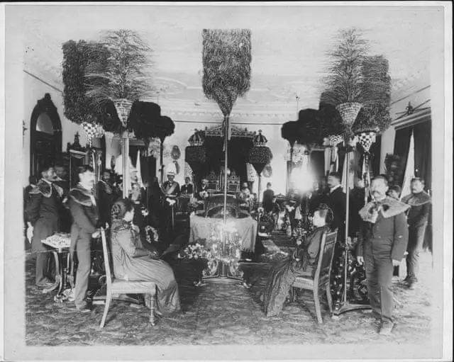 1891년 2월 8일, 카피올라니 Kapiolani 태후의 요청으로 선왕이 된 칼라카우아 Kalakaua 의 장례예배가 이올라니 궁전 Iolani Palace 의 왕좌실 Throne Room 에서 열렸다.