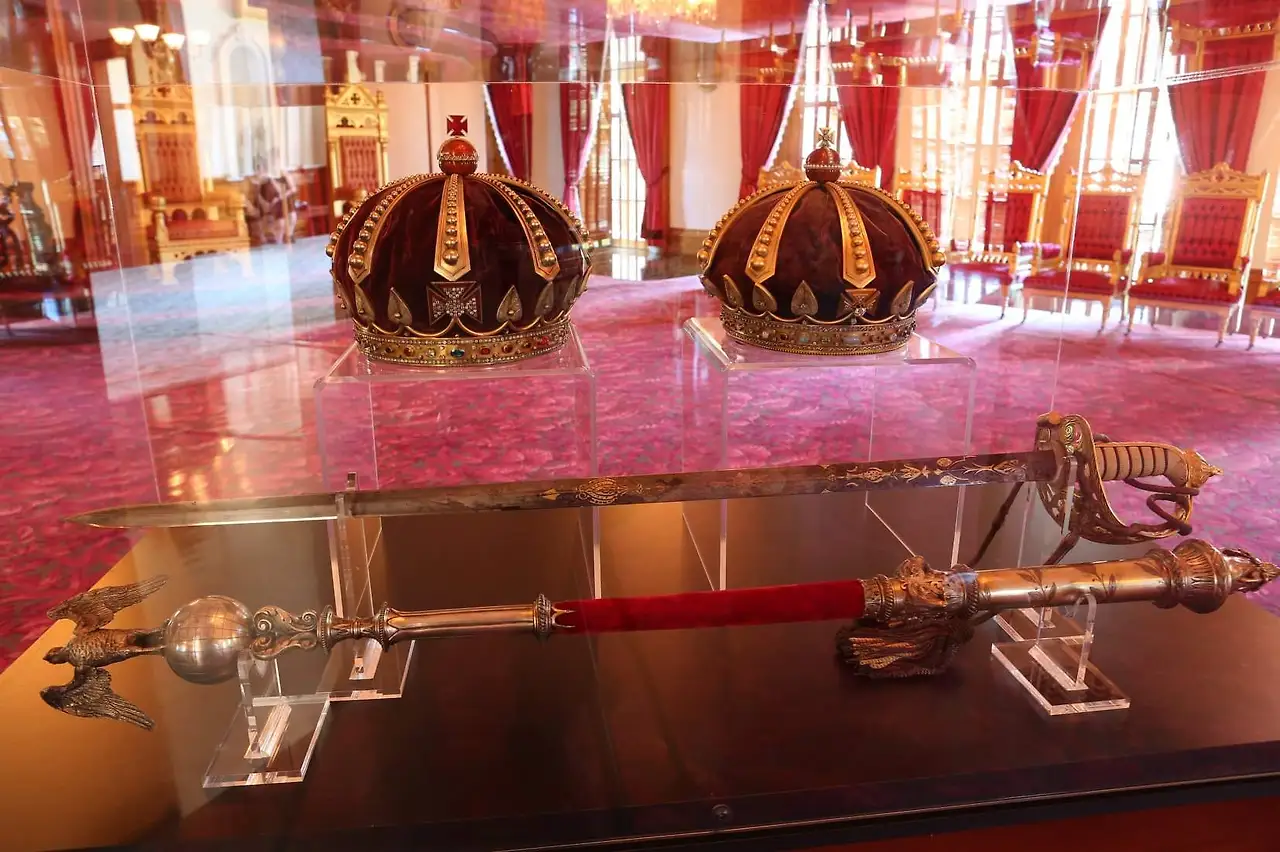 왕실의 상징인 Kahili (깃털로 만든 하와이 전통 홀), puloulou (선왕을 상징하는 셉터 - 사진 참조), 그리고 왕관 수여가 있었다. 왕과 왕비의 왕관은 다이아몬드, 오팔, 에메랄드, 루비, 진주, 그리고 심지어 쿠쿠이 (하와이에서 나는 견과류) 로 장식되어 있었다.
