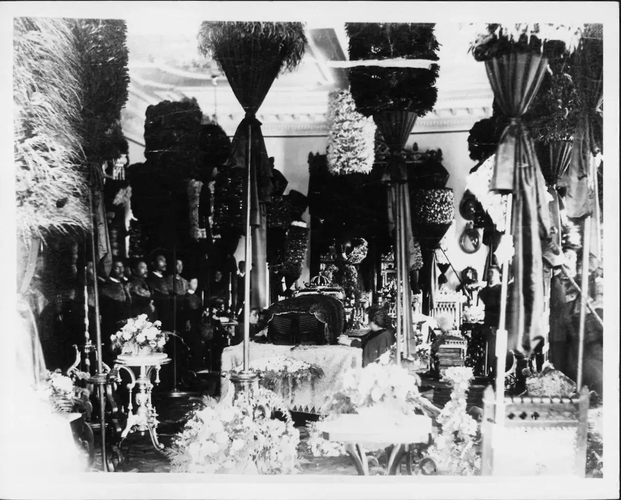 1891년 2월 15일 오전 11시, 칼라카우아 Kalakaua 선왕의 장례식이 이올라니 궁전 Iolani Palace 의 왕좌실 Throne Room 에서 시작되었다.