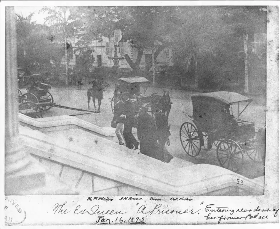 그 형량은 이올라니 궁전 Iolani Palace 의 2층에 위치한 방의 금고형으로 감형되었다. 7개월 후인 1895년 9월 6일, 릴리우오칼라니 Liliuokalani 여왕은 그녀의 자택인 워싱턴 플레이스 Washington Place 로 가석방되었고, 1896년 10월 사면되었다.