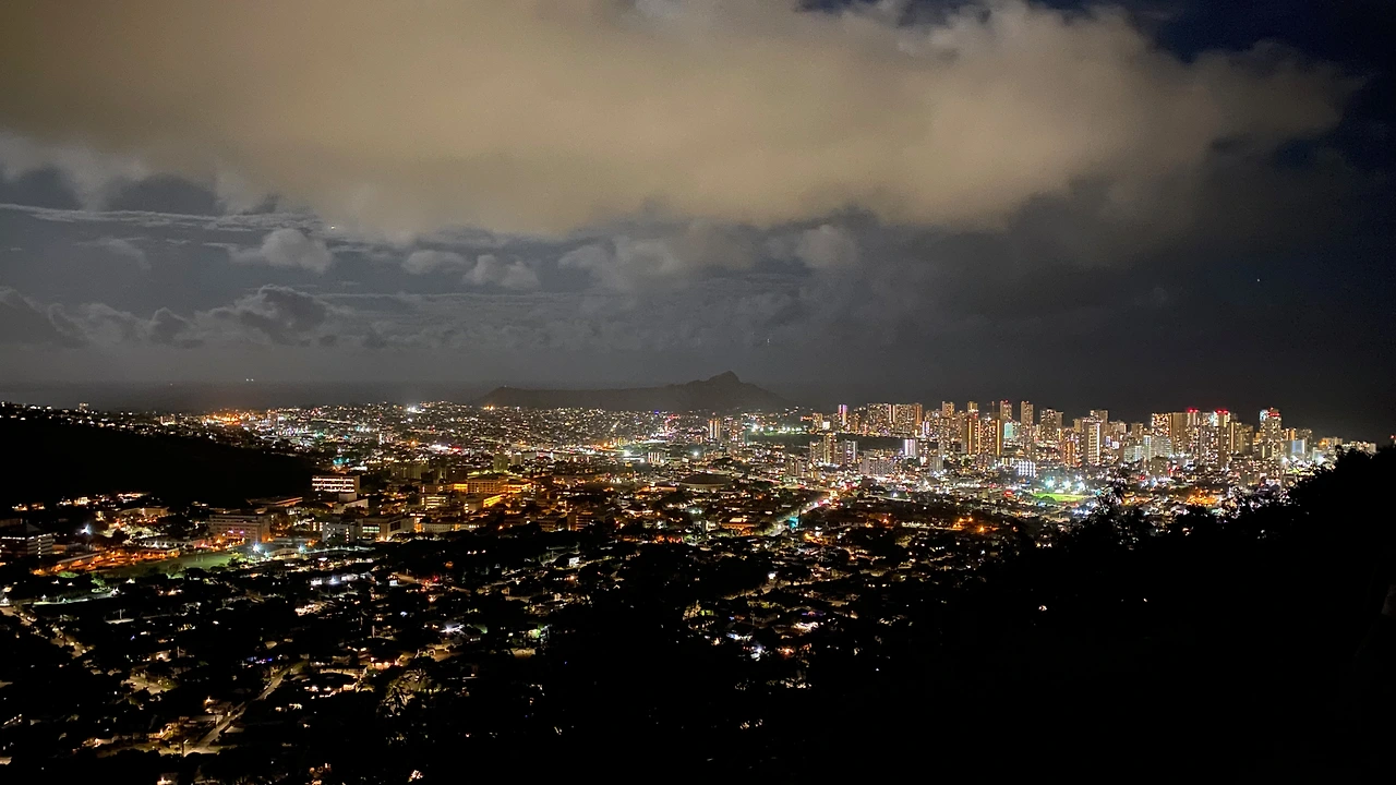 차로 굽이굽이 산으로 올라가면 산 중턱에 야경을 볼 수 있는 곳이 나온다. 반짝이는 도시와 다이아몬드 헤드가 한눈에 보인다.