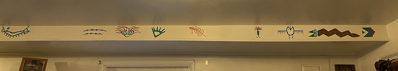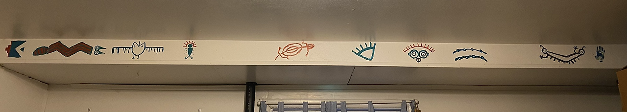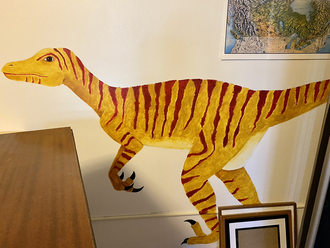 시댁에서 남편이 썼던 방 벽에는 남편의 작품(?)이 있습니다. 가장 좋아하는 공룡 그림과 언어에 관심이 많았던 남편이 만들어낸 상형문자가 남아있어요. 한국이었다면 아기가 어릴 때에는 전세에 살면서 원상 복귀 해야 하니까 조심조심 지냈을 것 같아요 ㅜㅠ 자가라도 벽에 영구적으로 남는 그림을...? ㅜㅜ