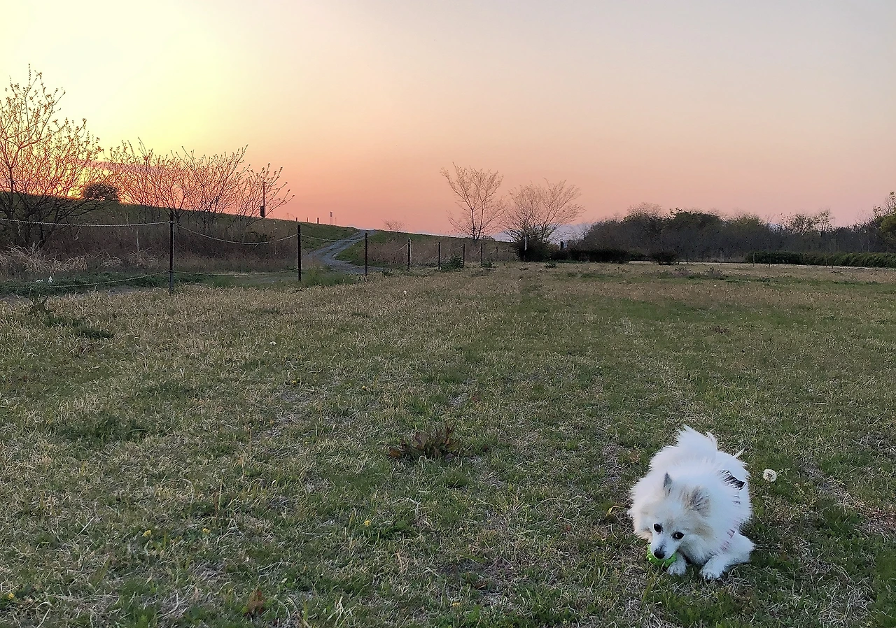 하늘에 노을이 필 무렵, 카루이자와에서 돌아온 우리는 그의 강아지를 데리고 공원에 갔다. 잔디밭과 나무 벤치 하나만 달랑 있는 그 공원은 증설을 위한 재단장 중이라 했다. 처음 보는 나를 경계하던 강아지는 공을 몇 번 던져 주었더니 기분이 내키면 10번에 1번은 손을 주게 되었다.