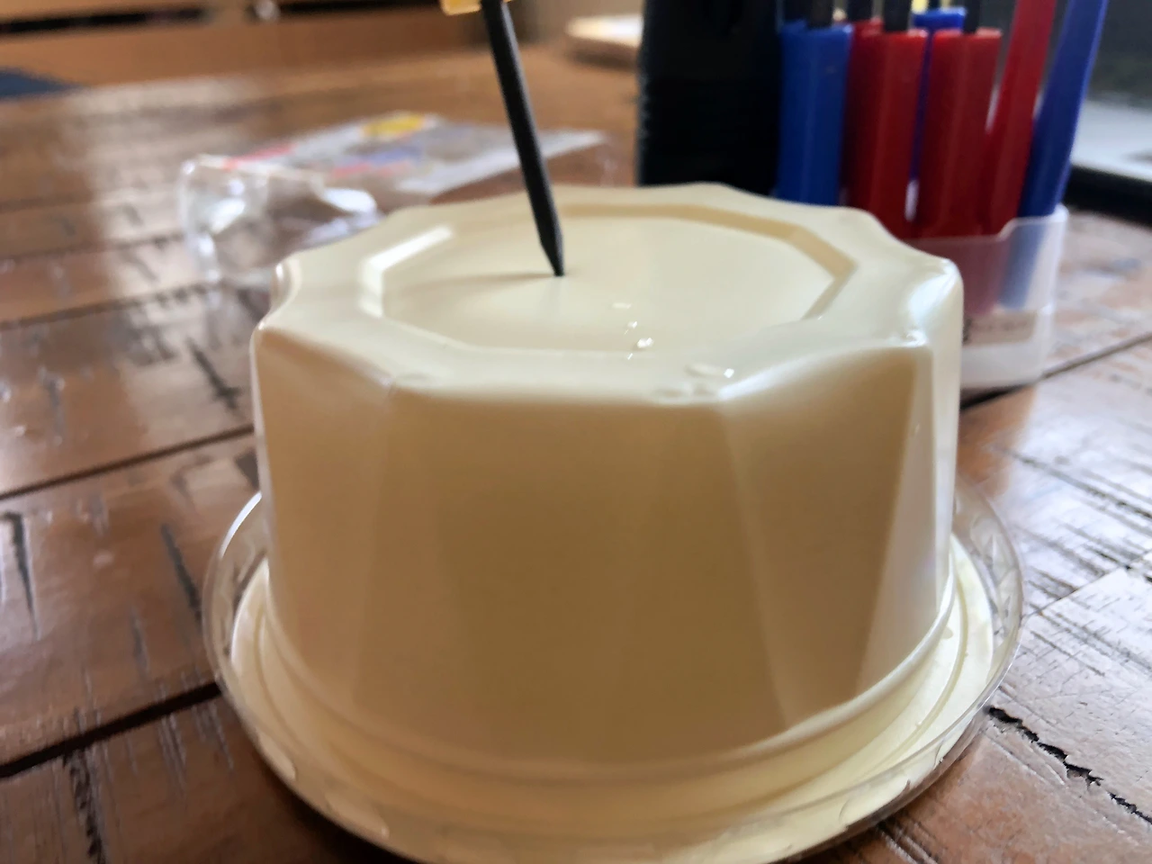 하지만 싹만 가지고는 판별을 할 수가 없어 그의 진짜 정체에 대해서는 잠시 묻어두고, 더이상 시간이 흐르기 전에 커다란 친구를 정식거처로 옮겨주려 분갈이를 했다. 이 친구가 몸을 뉘었던 화분은, 사실 빵에 발라먹는 단팥 페이스트 용기다. 비닐포트보다는 두껍지만 이 역시 소프트한 재질이라 살살 눌러주면 단단했던 흙들이 부드럽게 조각나며 식물을 뽑아내기 쉬워진다.