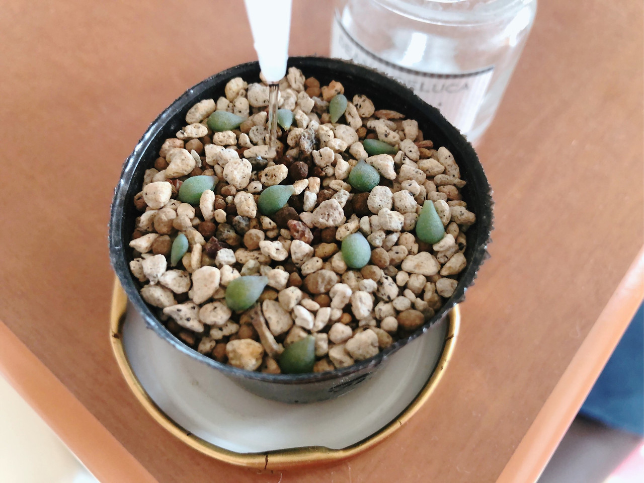 또 이 물뿌리개는 좀 더 빨리 만났으면 더 좋았을 뻔했다. 다육 잎은 물이 묻은 채로 시간이 지나면 시들시들 녹아 없어지기도 하는데 이 물뿌리개를 사용하면 정확히 흙에만, 원하는 양을 조절하며 물을 줄 수 있어 특히 잎꽂이 한 잎에 물을 줄 때 아주아주 편리하다. 병이 크다는 게 단점인데 일반 페트병에 뚜껑만 갈아 끼워 사용할 수 있는 것도 있어 그걸 쓰는 사람도 있고, 실리콘 소스병을 물뿌리개로 쓰는 사람들도 있다고 한다. 하기사, 꼭 원예용품이라고 쓰여있는 걸 쓸 필요는 없지. 우리 주위에서 구할 수 있고 이제는 사용하지 않는 것들을 활용하는 것도 괜찮을 것 같다.