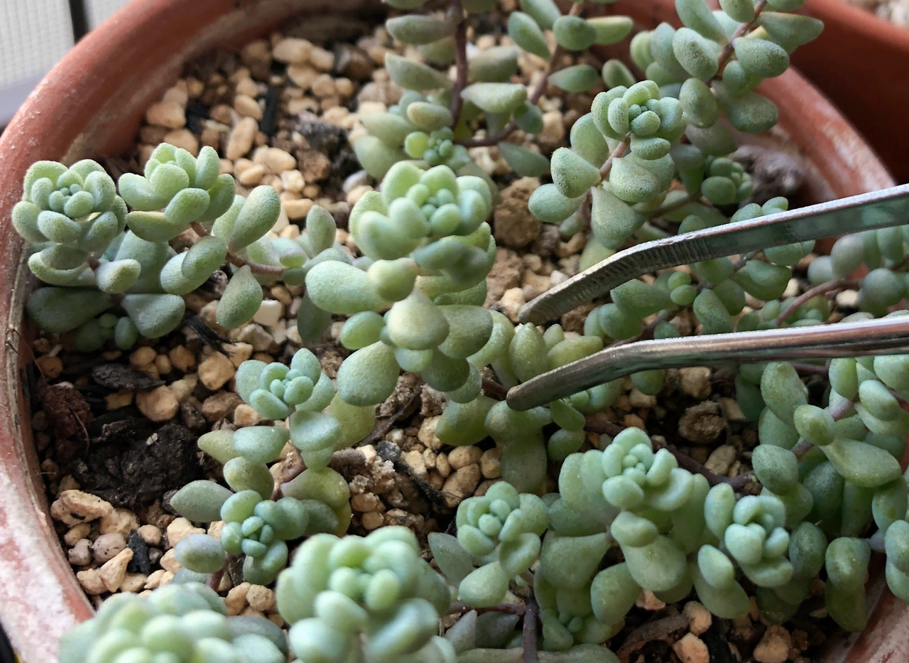 빽빽하게 군집한 다육이들 사이에 떨어진 잎이나, 잎 사이에 끼인 돌을 집어낼 때, 줄기가 가는 골든카펫을 꺾꽂이할 때, 여기저기 옮기다가 위치가 엇나간 잎꽂이 잎을 제자리로 돌릴 때에도 핀셋의 활약이 대단하다. 끝이 뾰족한 것은 쓰다가 다육 잎을 상처낼 수도 있다 하여 마감이 둥글게 처리된 것, 그중에서도 끝이 약간 휜 것이 쓰기 좋다 하여 믿고 따라 샀는데, 아직 사용법이 익숙지 않아서 그런가 힘을 덜 받는 것 같은 느낌에 일자로 된 핀셋이 나았으려나, 싶기도 하다.