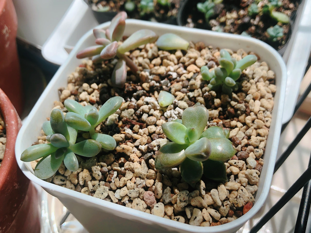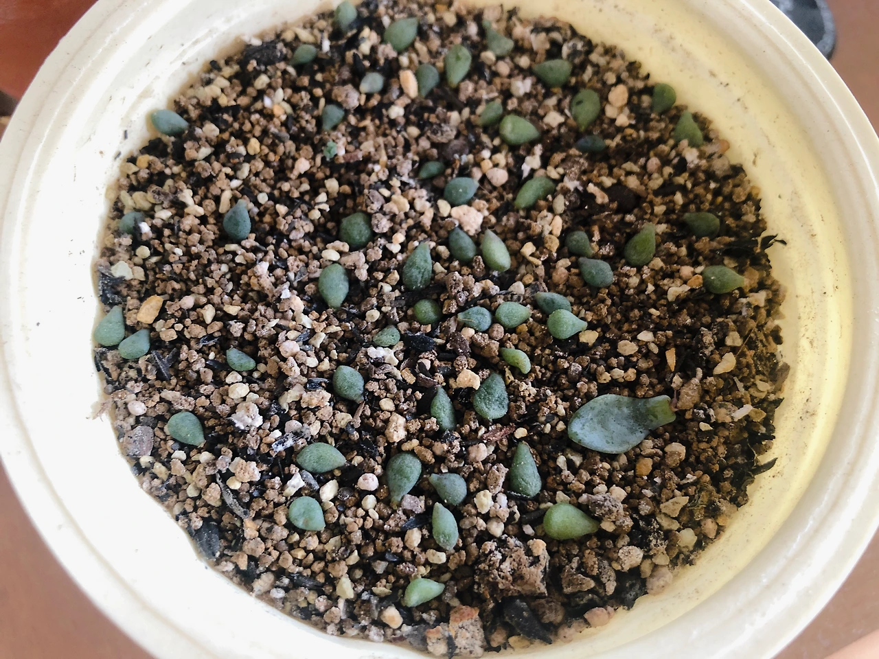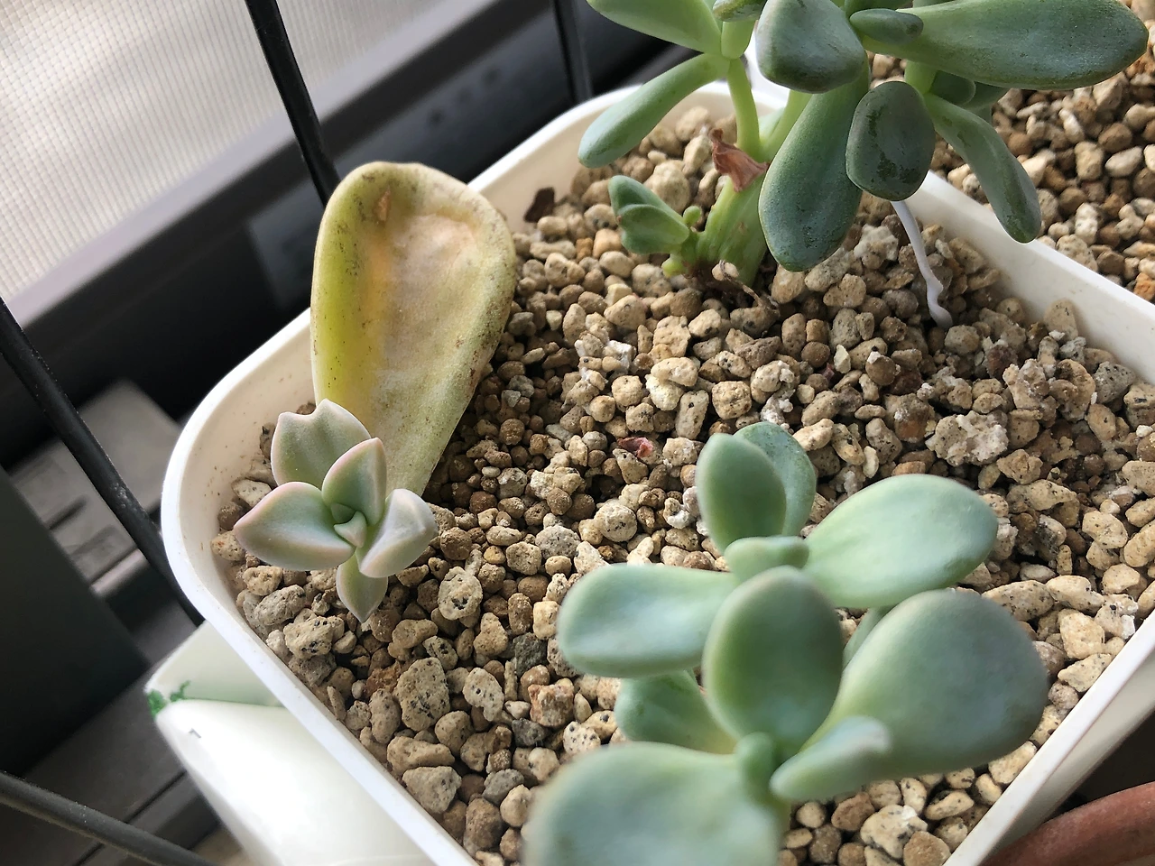 흙에 올려놓은 지 한 달을 훨씬 넘긴 이 친구들도 지금 이제 겨우 가느다란 뿌리가 나온 정도라서. 봄에는 2, 3주 정도로 새싹이 돋은 것 같은데 여름엔 역시 잎꽂이도 쉽지가 않다.