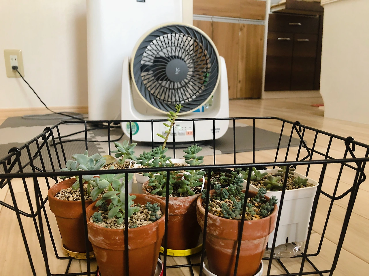 늘어난 에어컨 사용량이 다육이들의 활동반경을 줄이기도 했다. 발도 없는 식물이 무슨 활동인가 싶겠지만, 사실 이들은 해나 날씨에 따라 창가와 베란다를 왔다 갔다 하며 두 집 살림을 하고 있다. 특히 베란다는 유일하게 종일 해가 드는 곳이라 다육이를 위해 여름 햇볕을 부드럽게 해 줄 차광막도 달아두었다. 그런데 베란다엔 실외기가 있어 에어컨을 쓰면 뜨거운 열기로 차기 때문에, 차광막을 단 보람은 사라지지만 다육이들은 창가에서의 붙박이 생활을 시작하고 햇빛도 아침해만 받게 되었다.