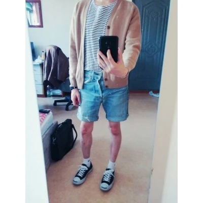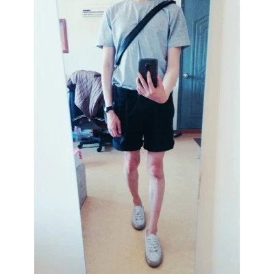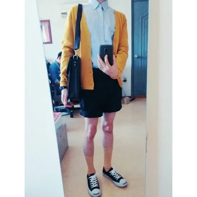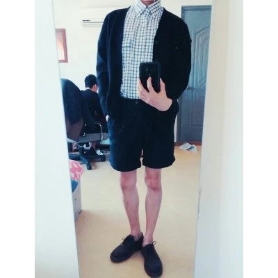 블랙/네이비 계열 반바지와 브라운 계열 로퍼 혹은 단화를 신어 주시고