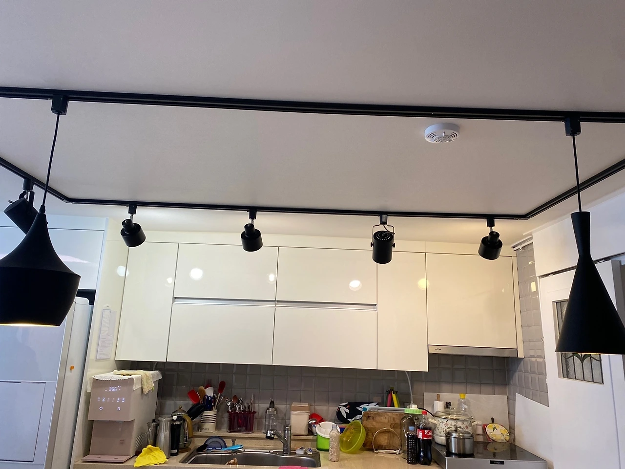 ‘요즘 조명 스타일이 뭐더라? 그 조명샵을 가서 직접 보는 게 나을까?‘ 신랑의 허락을 받은 이상 마음이 바뀌기 전에 빨리 실행해야 한다는 맘이 들었다. 며칠 인테리어 사진을 뒤적이며 가격 비교를 한 끝에 기존 사각레일을 활용할 수 있는 조명을 찾았다. 오래된 아파트 천정에 고정이 가능한 가볍고 편리한 제품이길 바라며…