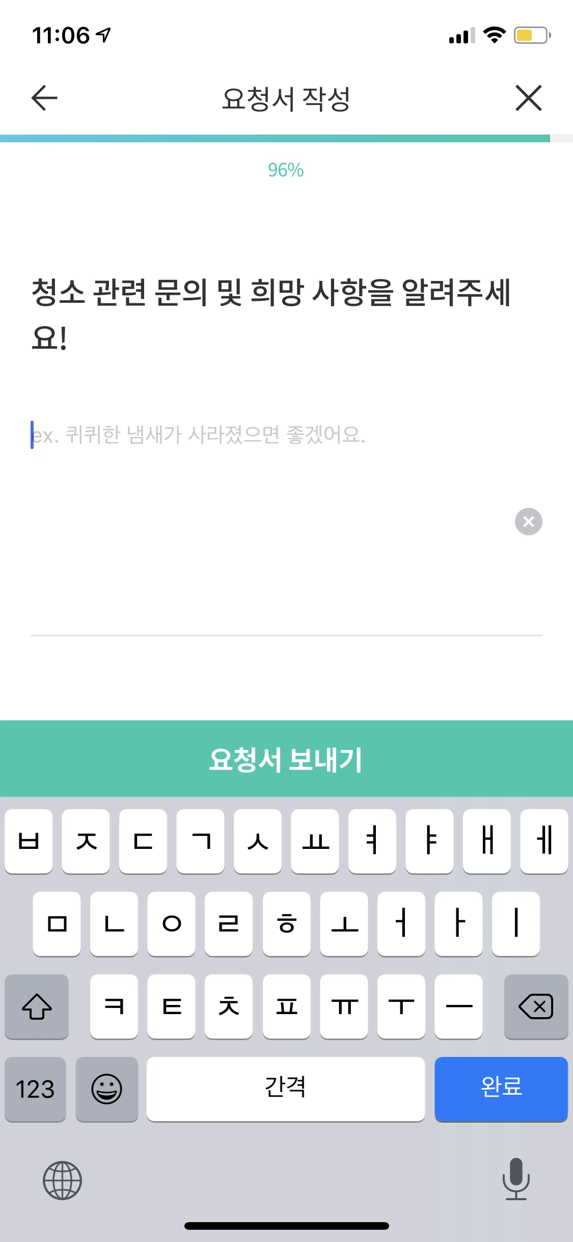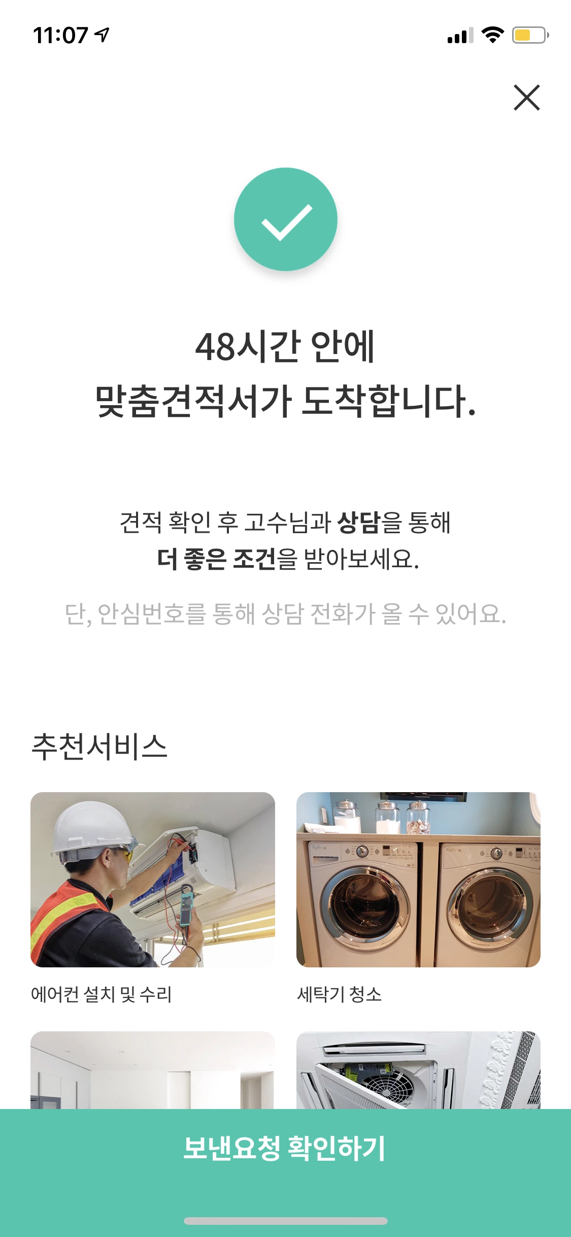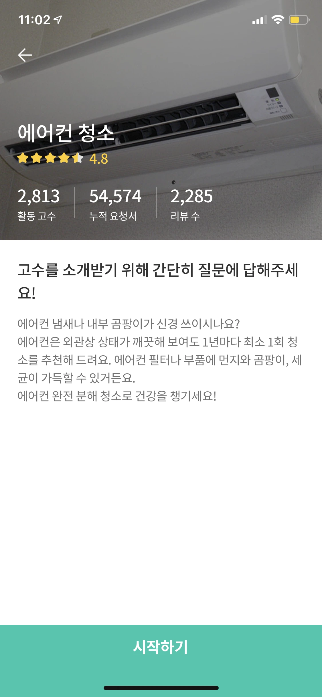 숨고는 앱을 설치하고 들어간 게 아니라, 네이버에서 기사님을 검색하다가 웹으로 유입되었다. 기사님을 찾을 땐 명확하게 원하는 종목이 있고, 원하는 시간이 정확하게 있다. 찾았을 때 바로 앱으로 유입이 되어서 앱을 설치하고 각 분야에 대해서 미리 준비되어있는 설문지를 작성했다. 설문지는 간단하고 한 페이지에 한 질문만 쉽게 작성되어 주어졌다. 질문지가 자세해서 작성하면서 정말 이 분야의 전문가들을 모실 수 있겠군..이라는 생각이 들었다.