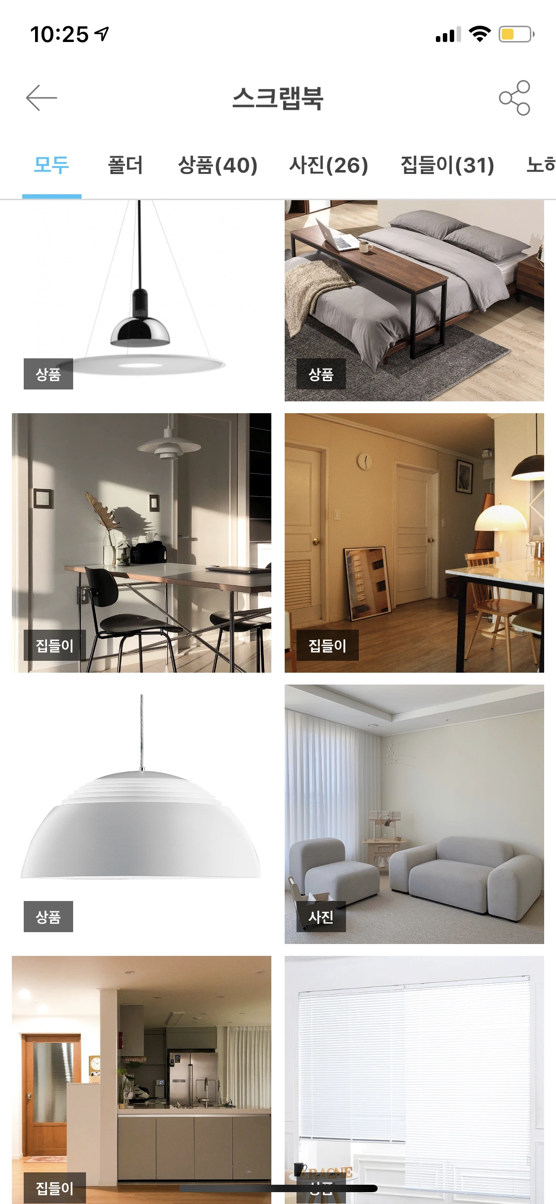 집들이 자체를 스크랩해서 그 사람을 기억할 수도 , 그 안에 상품을 스크랩해서 다음 구매를 도울 수도, 사진 자체를 스크랩해서 집을 찍는 방법을 연구해 볼 수 도 있다. 잘 모아진 스크랩북 열 핀터레스트 부럽지 않다.
