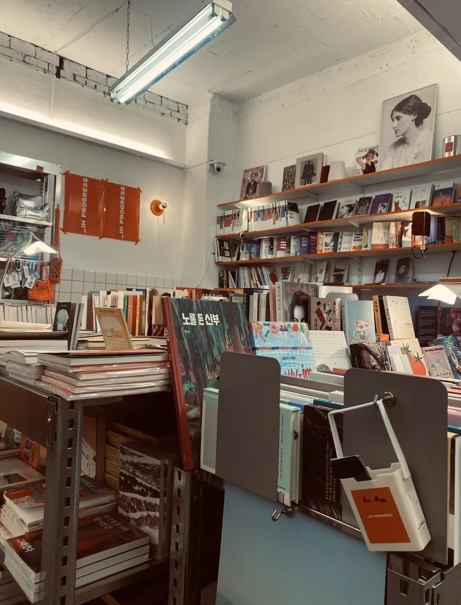 검고 긴 곱슬머리를 한 주인은 오후 1시가 넘어가는 시간까지 낮잠을 잘 수 있는 사람인가보다. 흰 원피스를 입었고 여유로운 느낌이었다. 개인 공간을 운영하면서 쉴 수 있는 사람인가보다. 예술가일 수도 있겠다. 자기만의 공간을 꾸려 가면서 시간을 자율적으로 운영하는 사람이었다. 자유롭고 편안한 삶 자체가 독립 서점과 어울렸다.