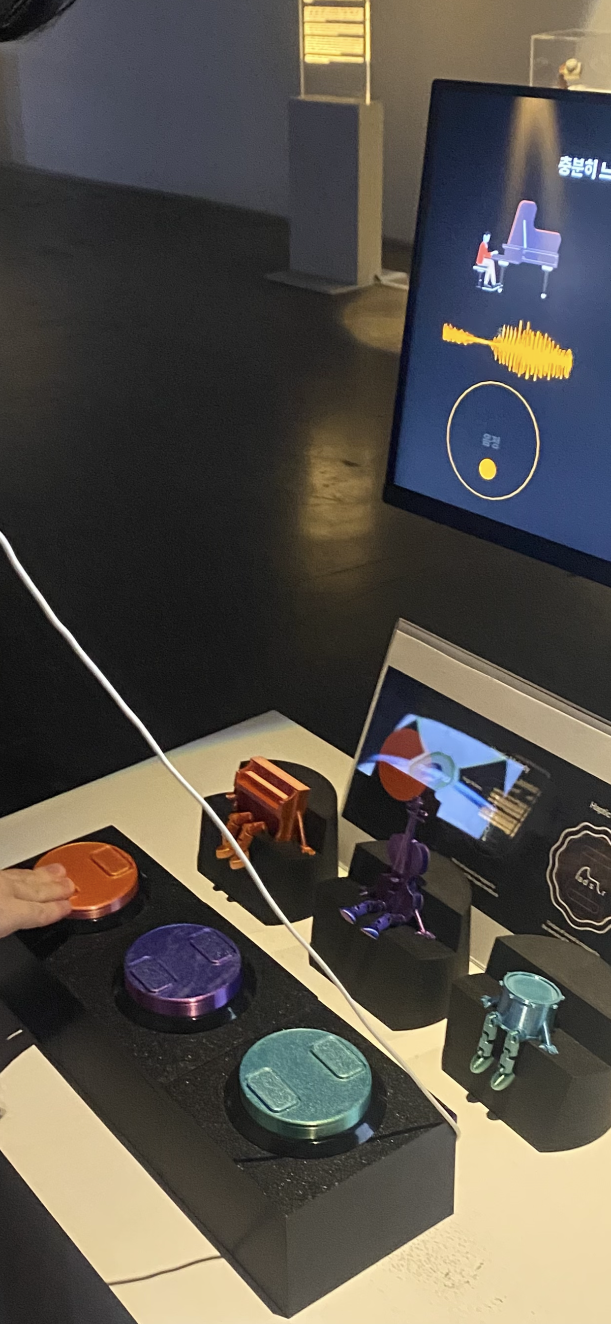 촉각으로 소리를 느낄 수도 있는 장치도 체험할 수 있었는데 손을 갖다대면 음악에 맞게 진동이 느껴졌다. 청각으로만 느낄 수 있다고 생각한 음악을 손끝으로 느껴보니 상당히 신기했다.