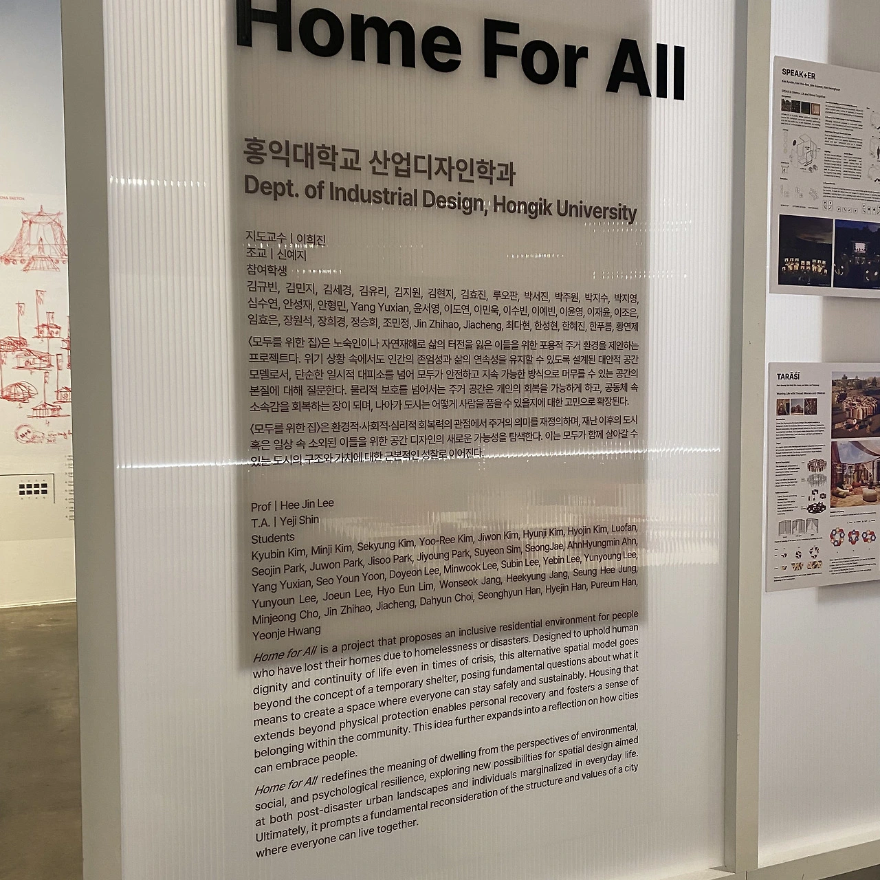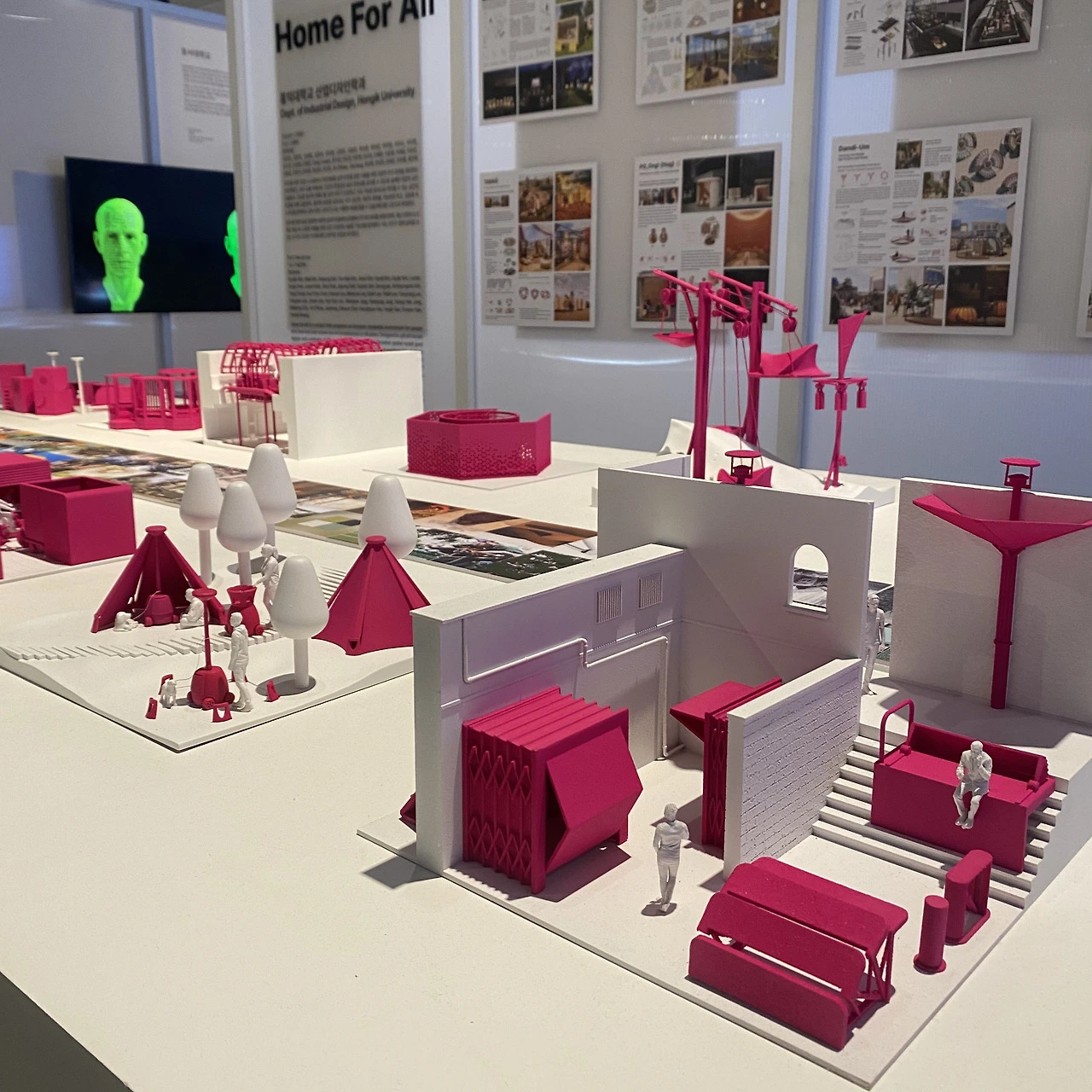여동생이 다니고 있는 홍익대학교 산업디자인학과의 포용적 주거 환경 디자인도 볼 수 있었다. 노숙인이나 자연재해로 터전을 잃은 사람들을 위한 일종의 대피소인데, 더 존엄적인 생활을 할 수 있도록 공간적으로 배려하였다.