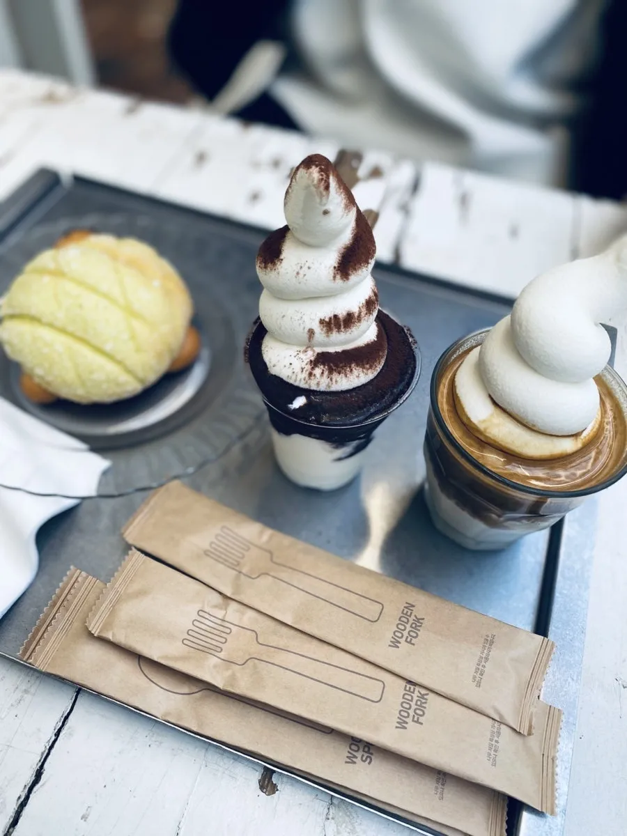 저희는 이렇게 주문했어요. 메론 거북이와 초코 아이스크림, 아이스크림 라떼였어요. 아이스크림 라떼는 11000원이었어요. 꽤 비싼 편인데 커피 맛도 달콤하고 좋고, 또 아이스크림이 위에만 쌓여 있는 게 아니라 바닥부터 높이 차 있는 거더라고요. 양이 정말 많았어요. 우유 아이스크림이라 부드럽고 깔끔했습니다. 동글동글한 아이스크림이 단단하게 뭉쳐 있어서 먹기 편했는데, 달콤한 라떼랑 정말 잘 어울리더라고요. 초코 아이스크림도 한 입 먹었는데 초콜릿이 굉장히 진했어요. 메론 거북이 안에는 크림이 잔뜩 들어서 맛있었습니다.